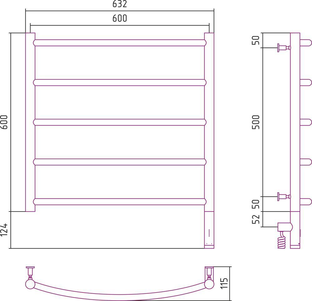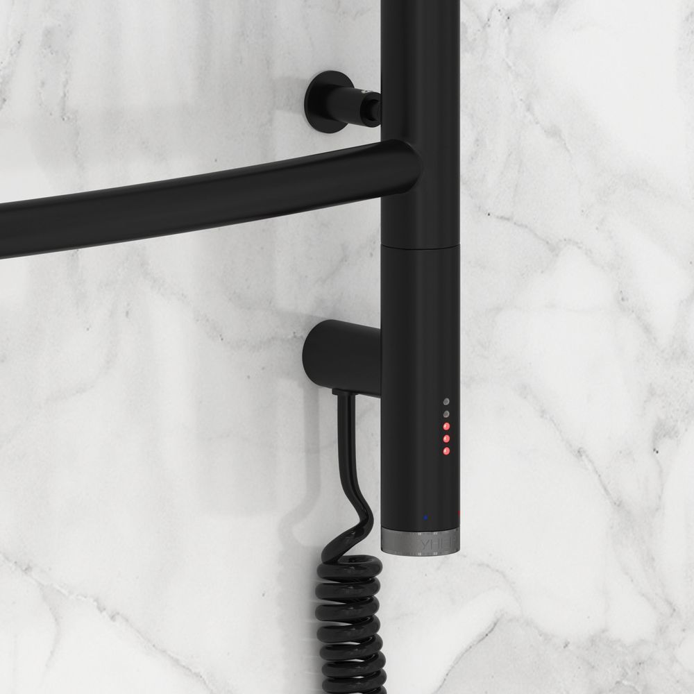 Полотенцесушитель электрический Сунержа Галант 3.0, размер 600х600 мм, 5 перекладин. Мощность 300 Вт, цвет чёрный матовый. Скрытое подключение.