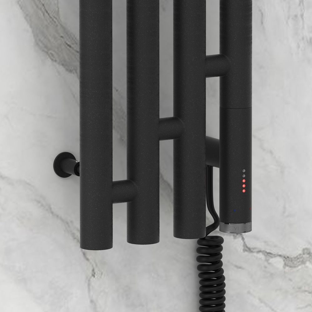 Полотенцесушитель электрический Сунержа Кантата 3.0, размер 1200х191 мм, 4 перекладины, мощность 300 Вт. Скрытое подключение. Цвет тёмный титан муар.