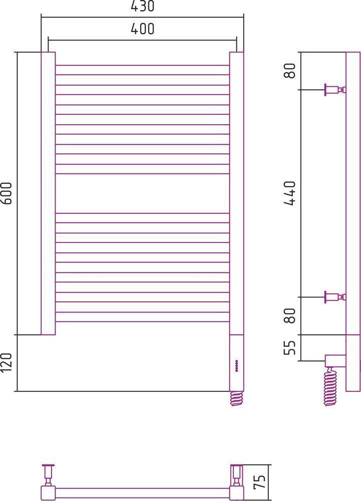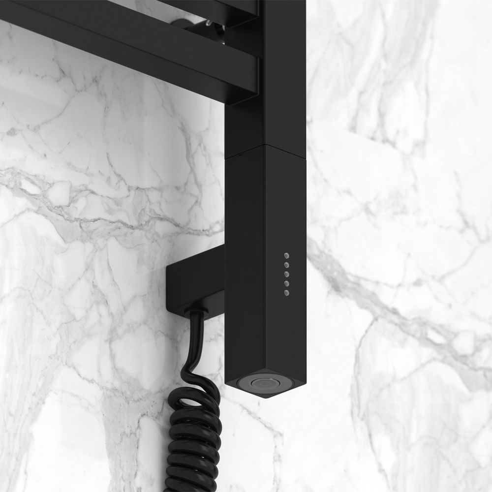Полотенцесушитель электрический Сунержа Модус 3.0, размер 600х430 мм, 12 перекладин(6-6). Мощность 300 Вт, цвет чёрный матовый. Интегрированное в корпус скрытое подключение.