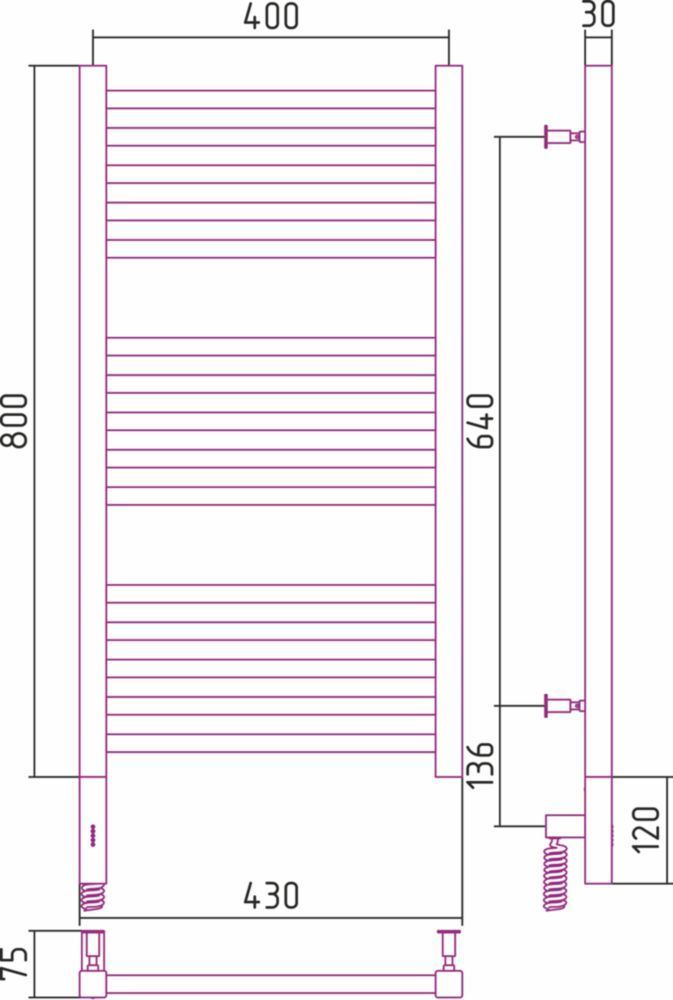 Полотенцесушитель электрический Сунержа Модус 3.0, размер 800х430 мм, 15 перекладин(5-5-5). Мощность 300 Вт. Возможна установка модуля скрытого подключения.