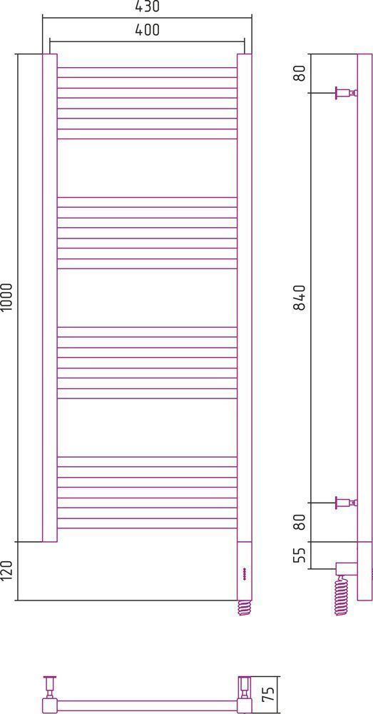 Полотенцесушитель электрический Сунержа Модус 3.0 П16 1000x400 мм 31-5701-1040 R, чёрный матовый
