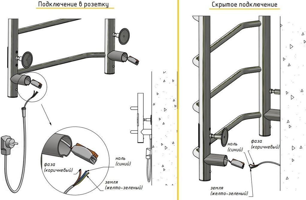 • Скрытое подключение: Благодаря приваренным в нижней части вертикальных труб двум распаячным коробкам, в которых  соединяется электропроводка, возможно скрытое подключение к электричеству слева и справа.