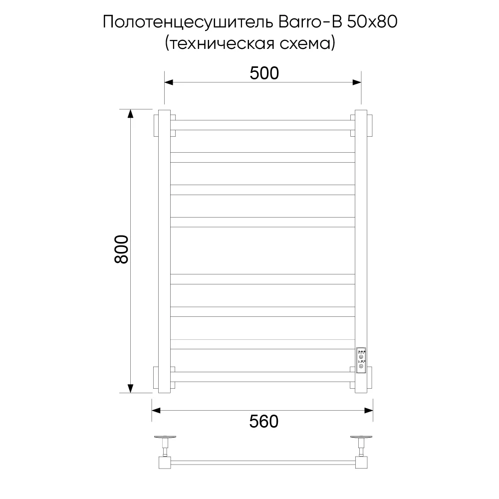 Полотенцесушитель электрический Veconi Barro-B П8 500x800 мм B8050CH-B - фото