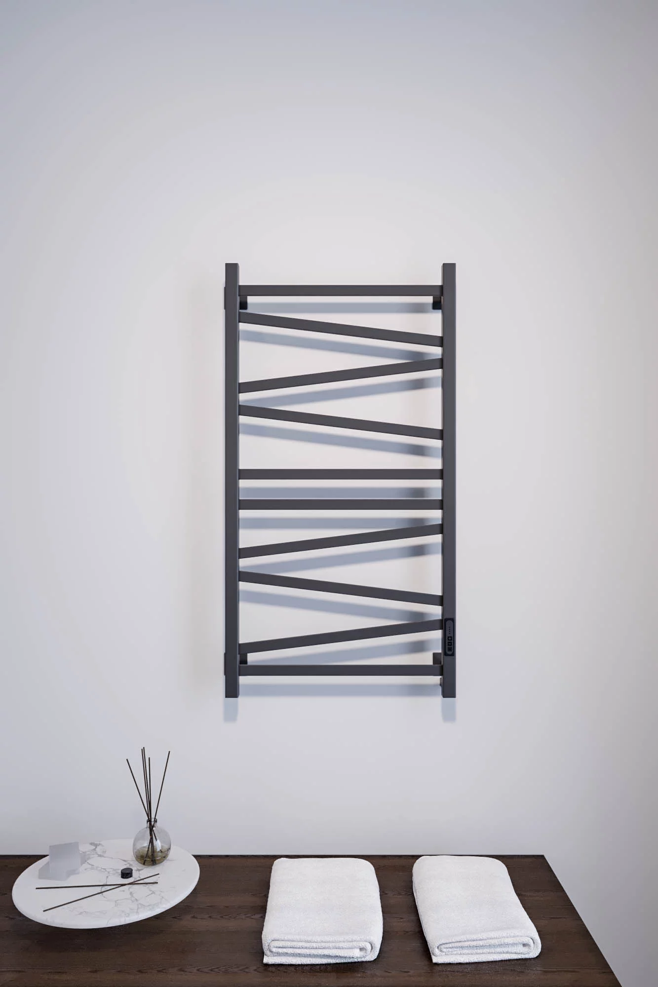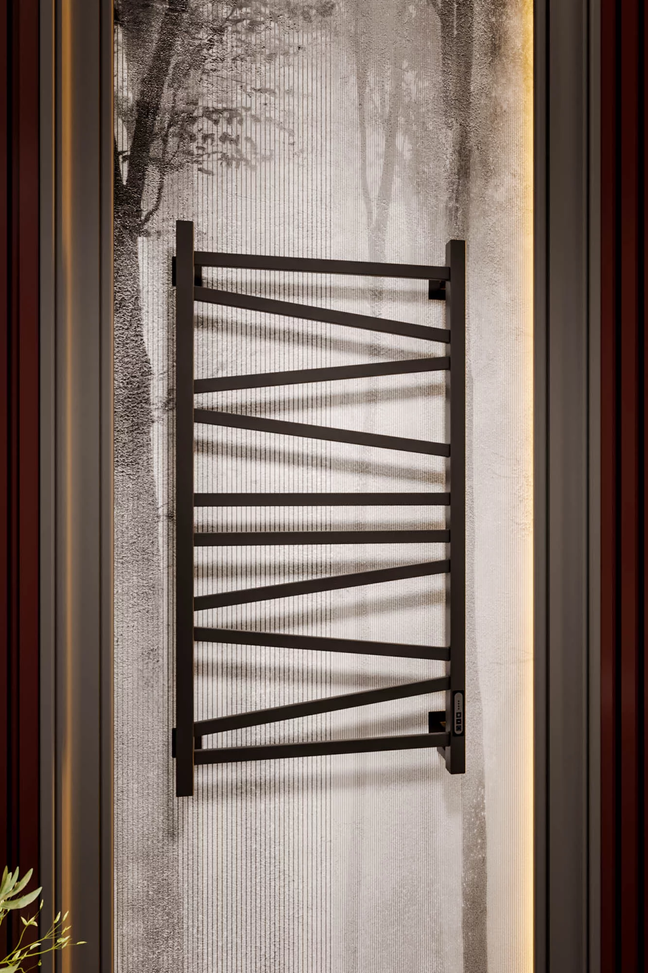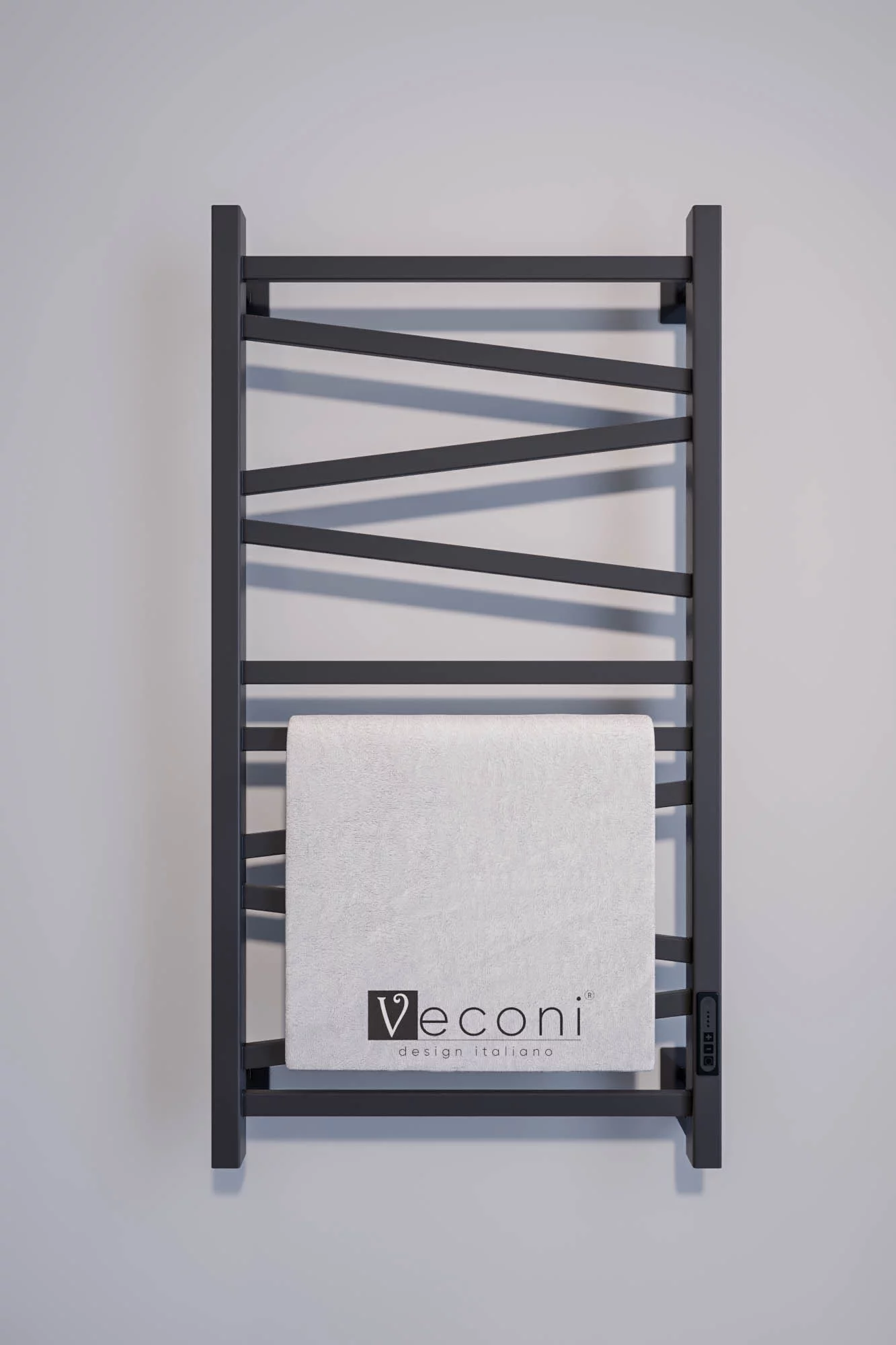 Полотенцесушитель электрический Veconi Barro-C B10050B-C, размер 500х1000 мм, 10 перекладин, мощность 165 Вт. Скрытое подключение. Цвет чёрный.