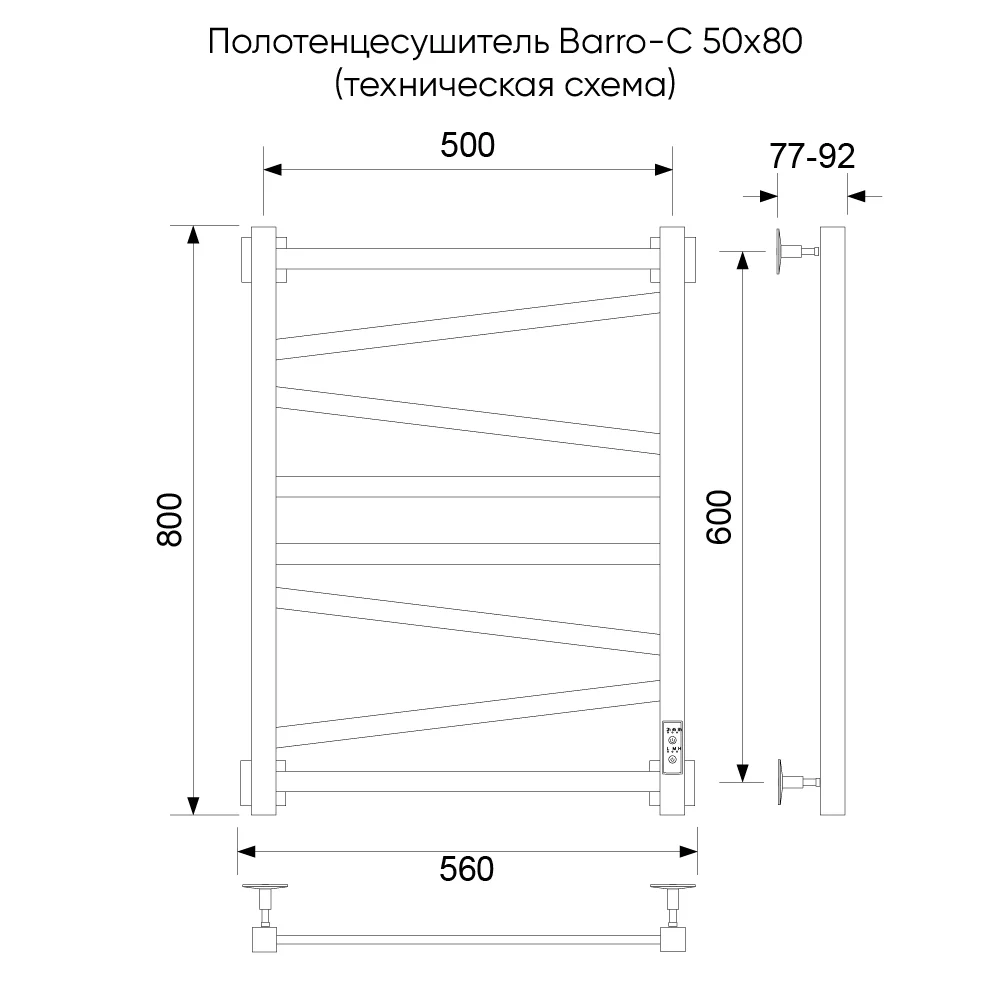Полотенцесушитель электрический Veconi Barro-C П8 500x800 мм B8050B-C, чёрный