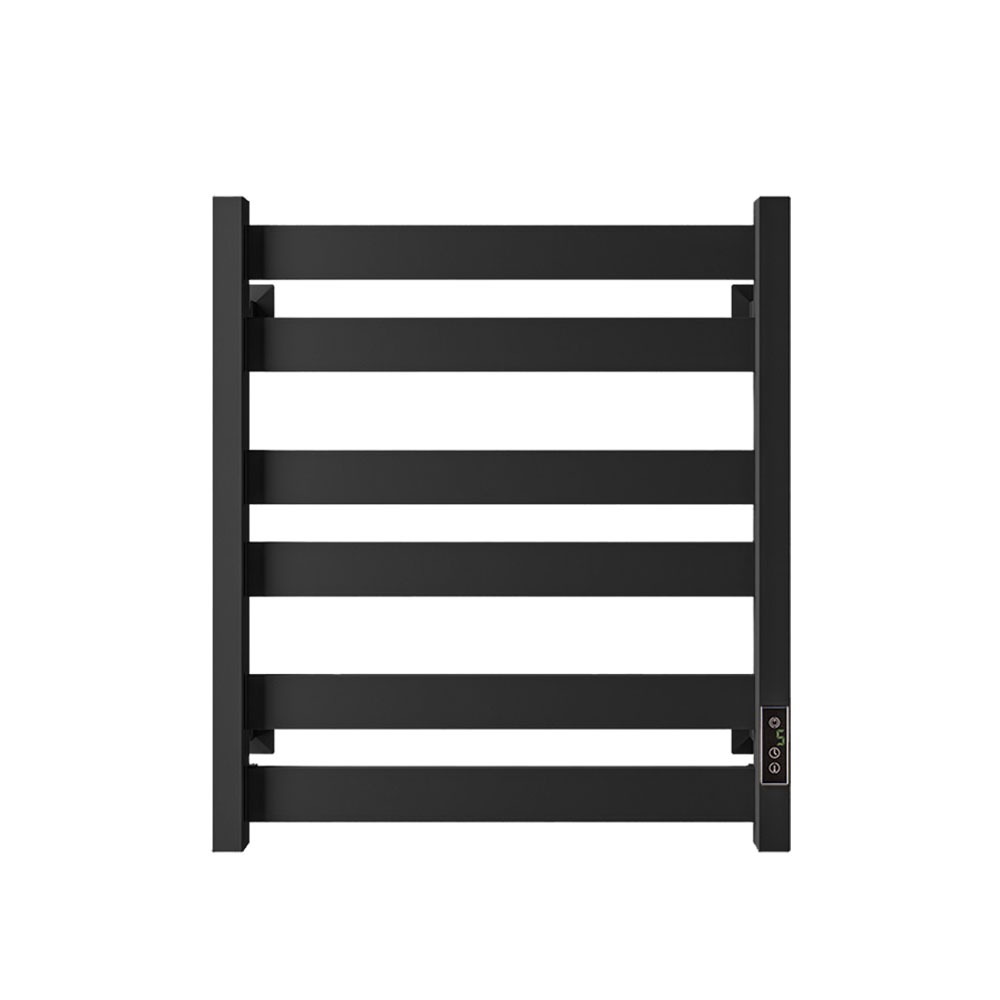 Полотенцесушитель электрический Veconi Piatto P6050B, размер 500х600 мм, 6 перекладин, мощность 107 Вт. Скрытое подключение. Цвет чёрный.