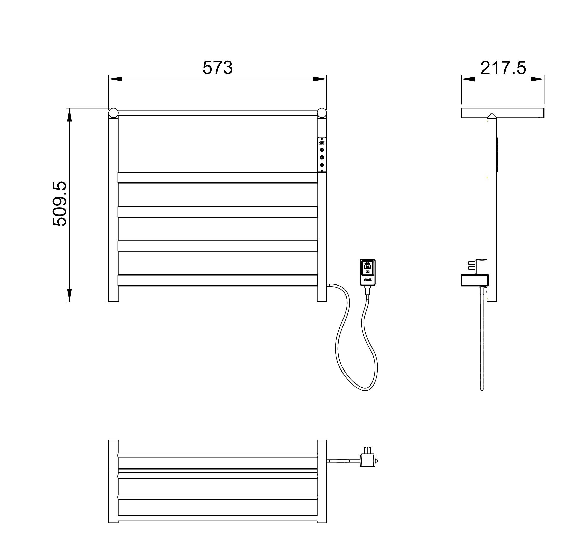 Полотенцесушитель электрический Wonzon & Woghand Essen с полкой WW-A402-BR, размер 575x510 мм, 5 перекладин, мощность 75 Вт, цвет никель.