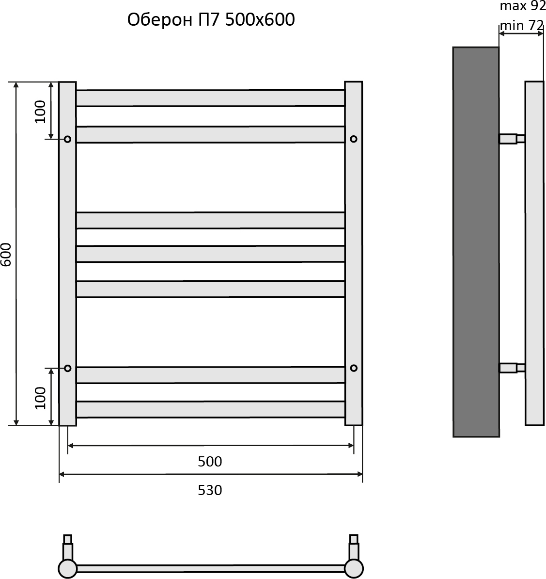 Полотенцесушитель водяной Aquatek Оберон П7 500х600 мм AQ RO0760BL, чёрный муар