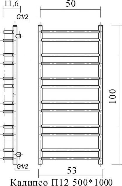 Полотенцесушитель водяной Domoterm Калипсо П12 500х1000 мм