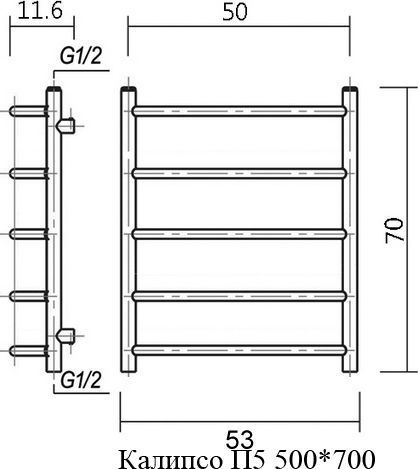 Полотенцесушитель водяной Domoterm Калипсо, 5 перекладин, размер 530х700 мм, цвет хром.