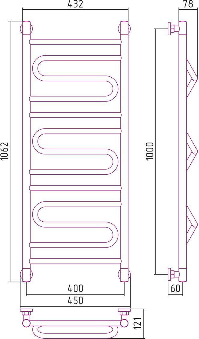 Полотенцесушитель водяной Сунержа Элегия+ П13 1000х400 мм 00-0205-1040