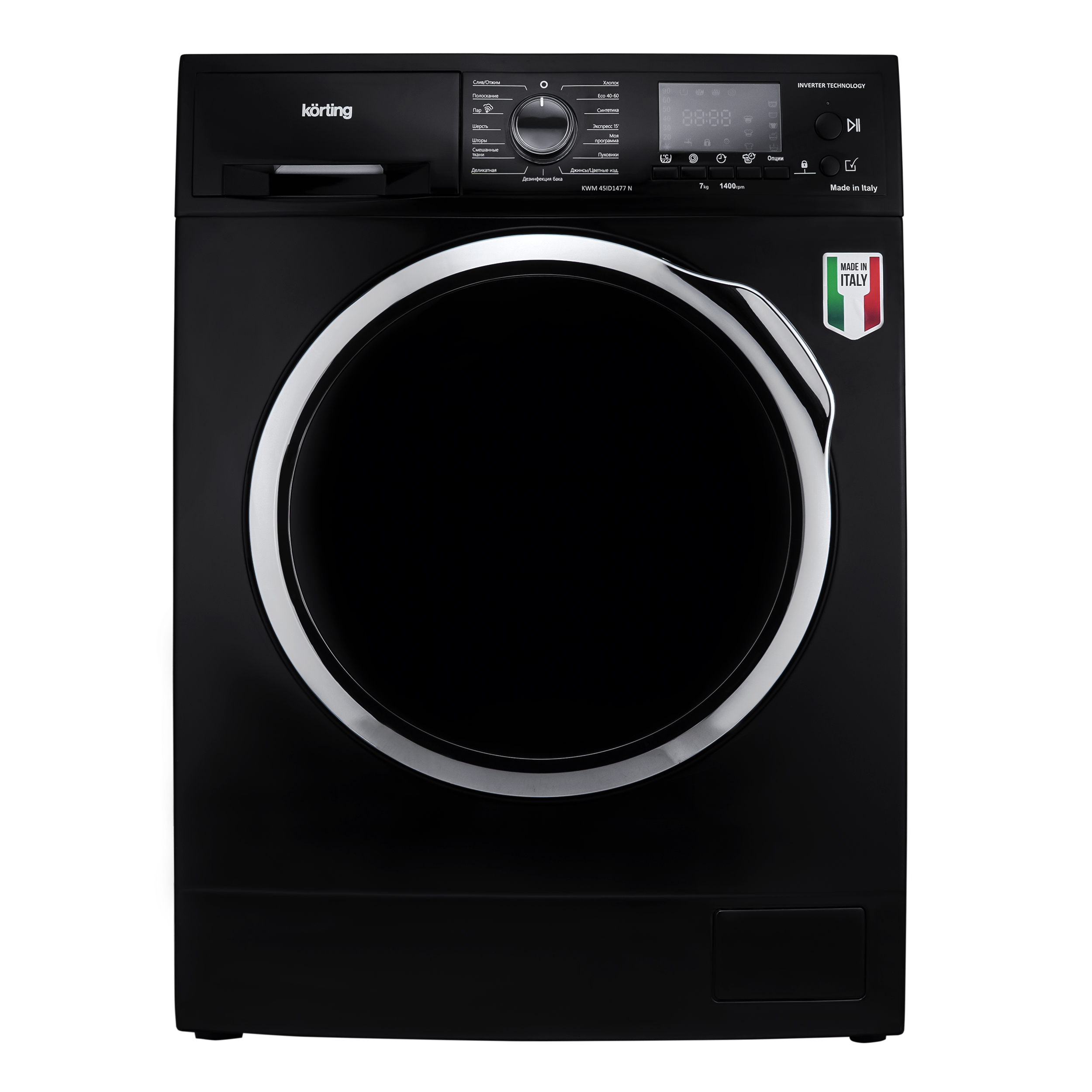 Стиральная машина Korting KWM 45ID1477 N с инверторным двигателем, цвет чёрный.