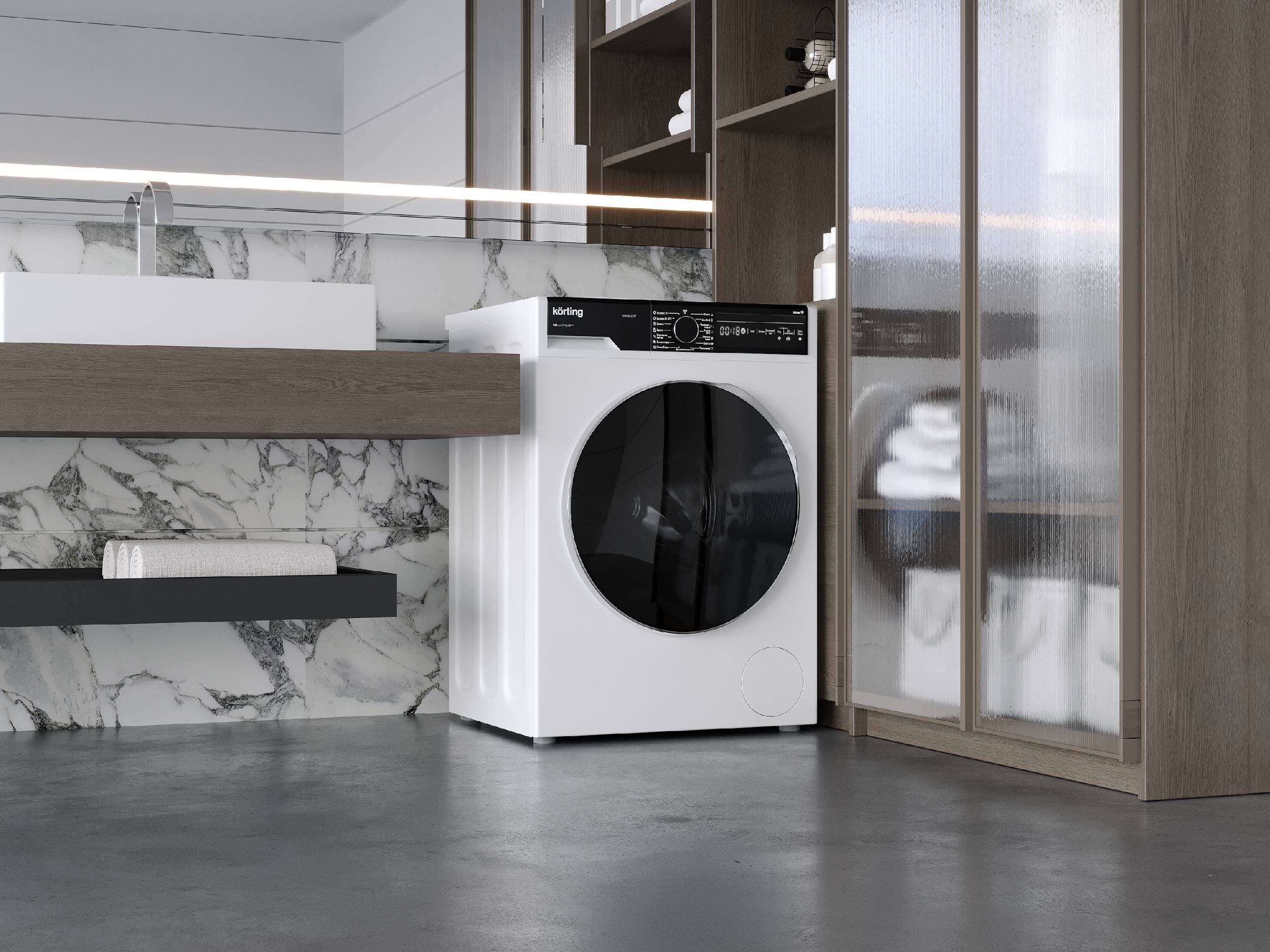 Стиральная машина с паром Korting KWM 58ILS1297 с инверторным двигателем, цвет белый.