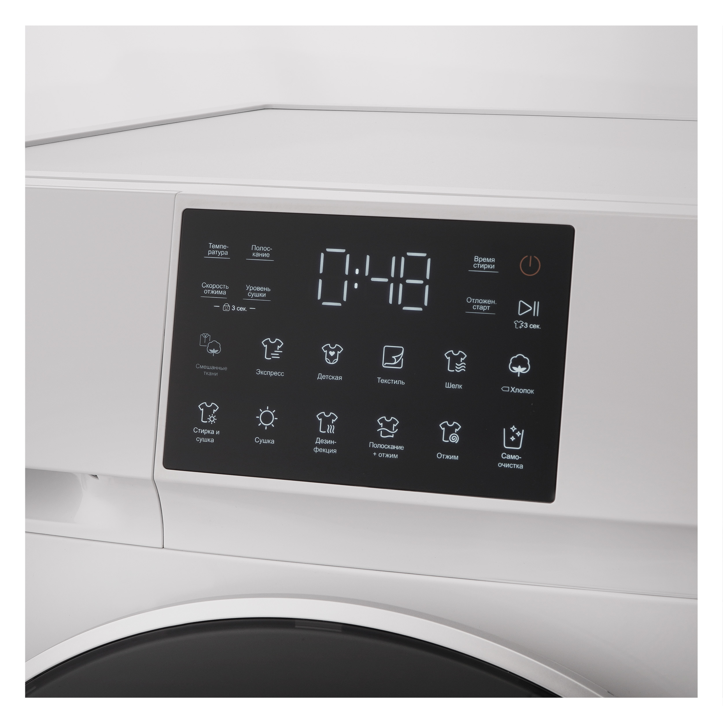 Стиральная машина с сушкой KWD 60DV107 – это высокотехнологичное и одновременно элегантное решение для современных домашних хозяйств. Объединяя функции стиральной и сушильной машин, этот прибор позволяет эффективно экономить пространство и время. Выполненная в классическом белом цвете, модель предлагает множество полезных функций, включая 12 различных режимов стирки, среди которых есть программы с паром. С глубиной 58 см, машина вмещает до 10 кг белья в режиме стирки и 7 кг в режиме сушки. Скорость отжима достигает 1200 оборотов в минуту. Интуитивно понятное сенсорное управление делает взаимодействие с прибором простым и удобным, а минималистичный дизайн без лишних элементов обеспечивает легкость в уходе. Система адаптивного залива позволяет машине самостоятельно определять необходимое количество воды в зависимости от объема и впитывающей способности белья. Контроль пенообразования оптимизирует использование моющих средств, предотвращая избыточное пенообразование и обеспечивая качественную стирку. Контроль баланса барабана гарантирует равномерное распределение белья и автоматически устраняет дисбаланс, если он возникает. Функция отложенного старта до 24 часов дает возможность запрограммировать работу прибора на удобное время. Инверторный мотор с прямым приводом на магнитной подвеске обеспечивает высокую мощность, низкий уровень шума и стабильную работу. Для повышения безопасности на стеклянном люке предусмотрена защитная крышка, которая предотвращает прикосновение к нагретому стеклу во время работы на высоких температурах и помогает избежать накопления пыли.
