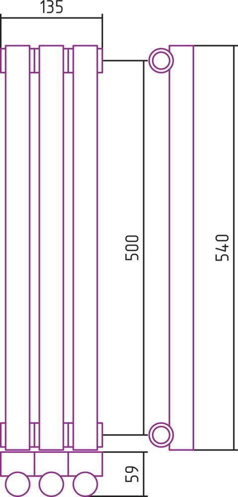 Радиатор Сунержа Эстет-1 135х500 мм (3 секции) 00-0301-5003 универсальное подключение