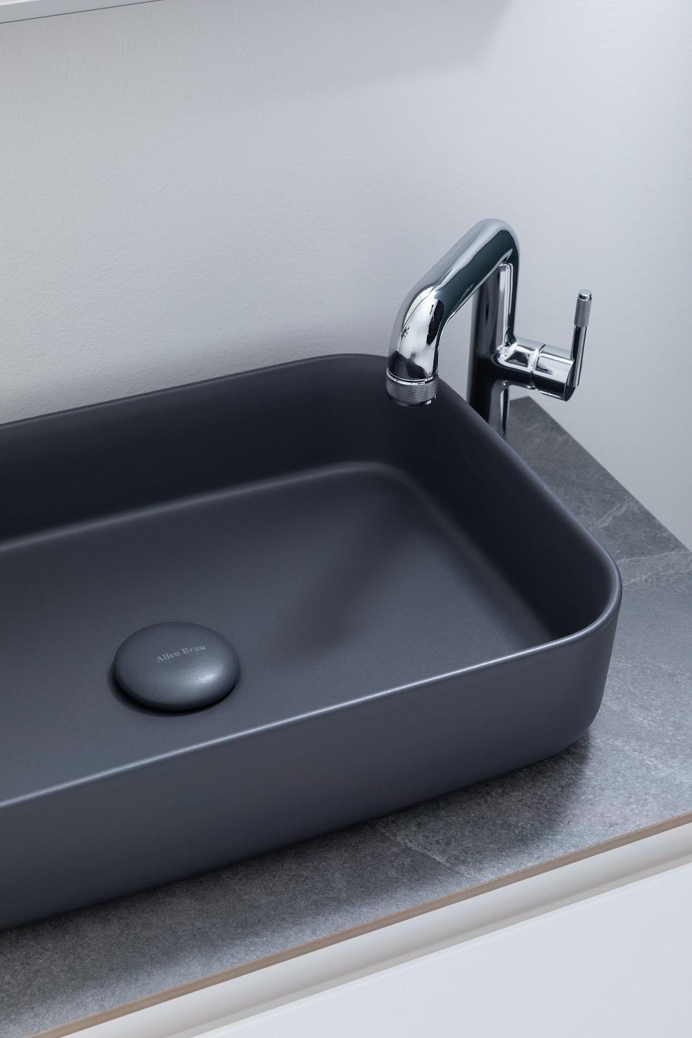 - Накладная раковина для ванной комнаты Allen Brau Fantasy Quad в цвете «Антрацит» шириной 50 см изготовлена из высококачественной керамики, что обеспечивает прочность, долговечность и элегантный внешний вид.