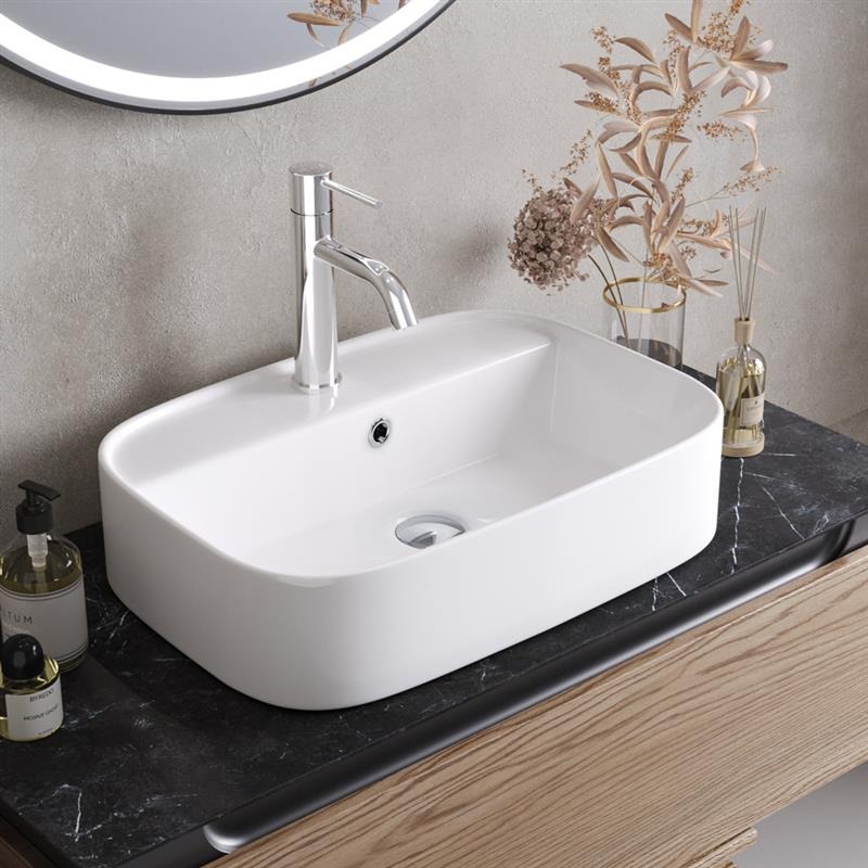 Раковина-чаша Cezares CZR-6616 с отверстием перелива, размер 555х390 мм, цвет белый. Донный клапан и сифон в комплект поставки не входят и приобретаются отдельно.