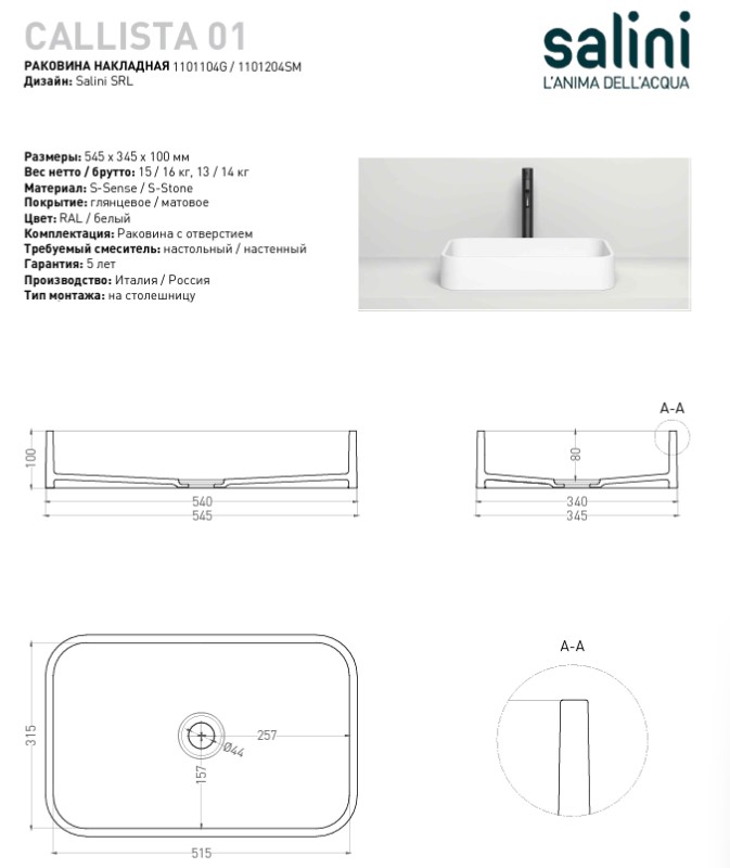 Характеристики Salini (1101104G)