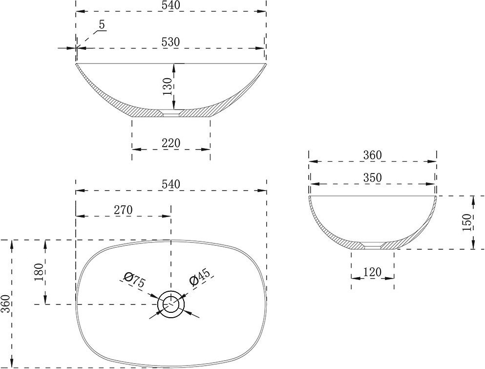 Раковина-чаша Vincea 54 см VBS-6T12MW, белый матовый