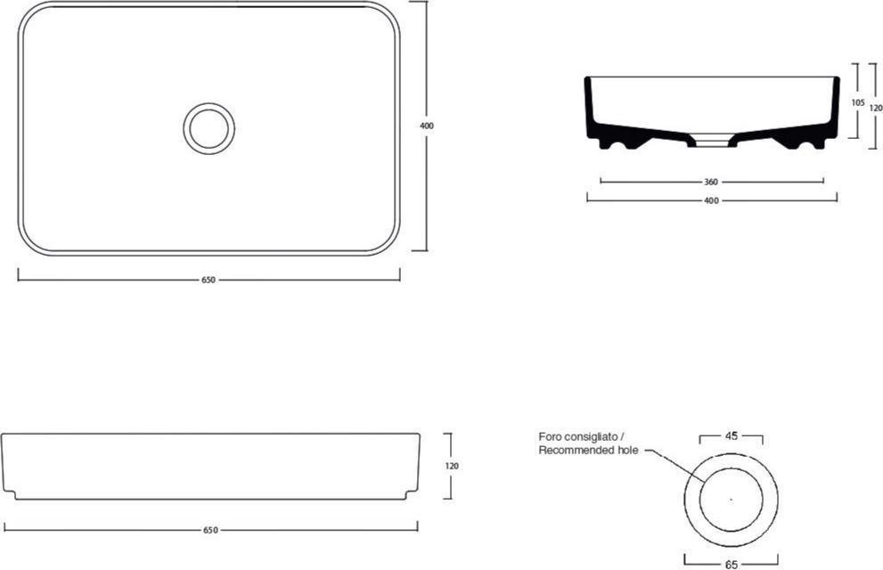 Раковина-чаша White Ceramic Blade 65 см W051701