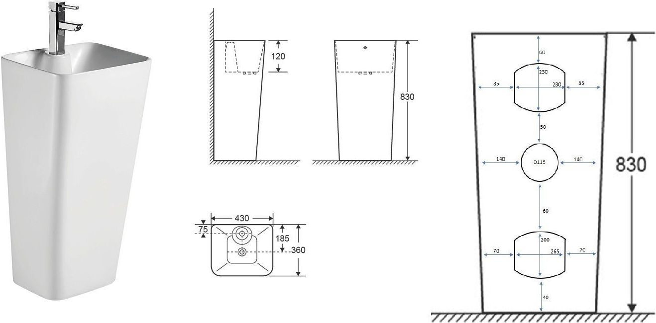 Раковина напольная Ceruttispa Dorris, размер 430x360x830 мм, цвет белый.