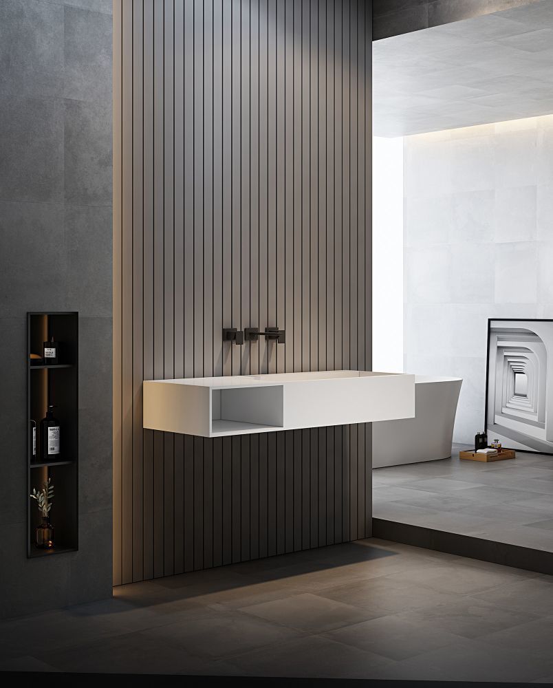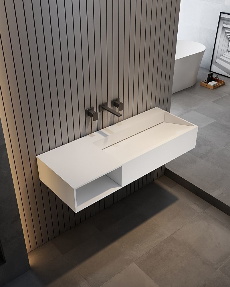 Раковина подвесная Abber Stein 120 см AS2640-1.2 L, белый матовый