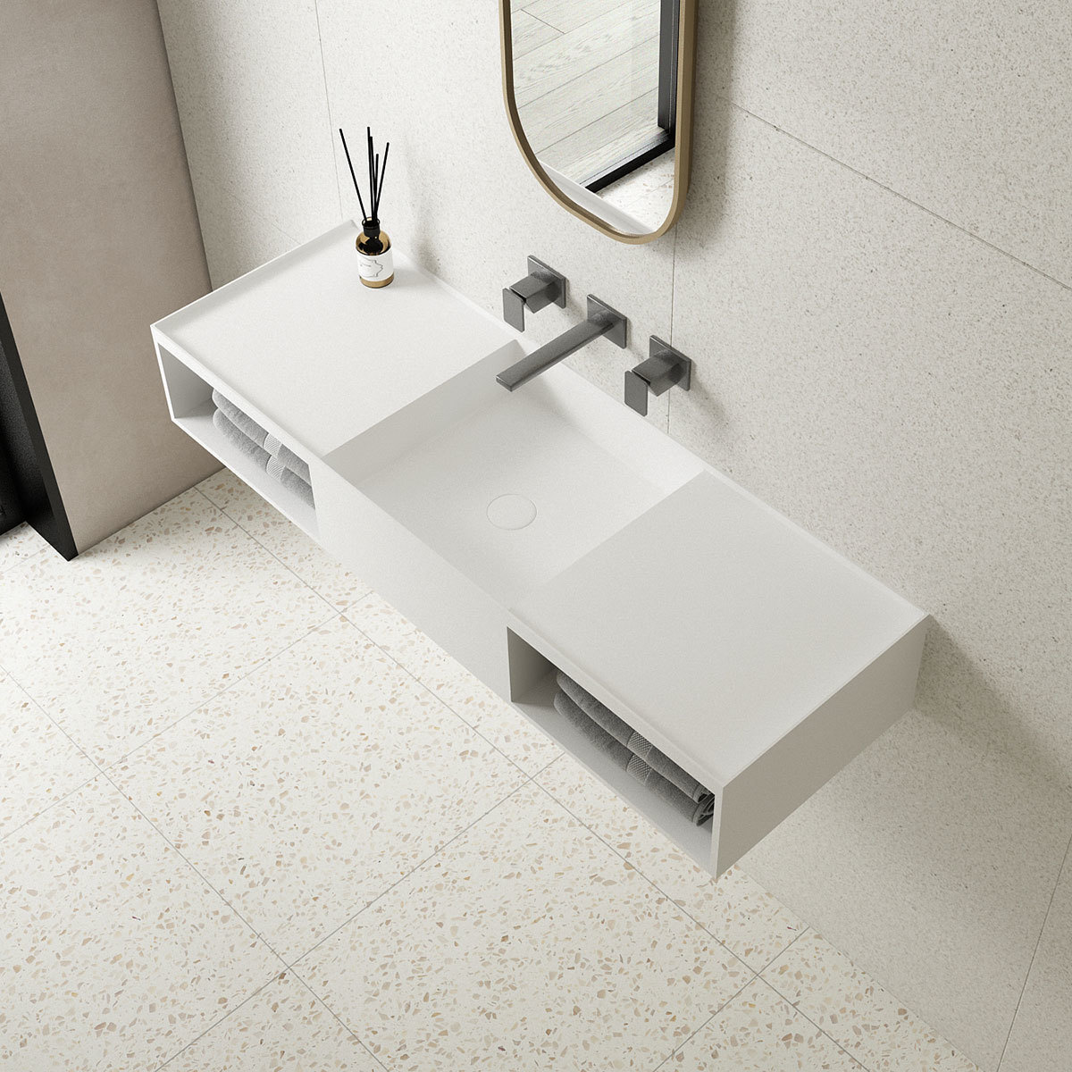 Раковина подвесная Vincea Solid Surface 120 см VWB-6S212MW, белый матовый