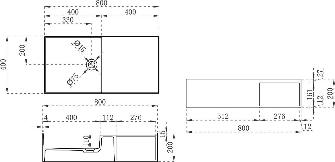 Раковина подвесная Vincea VWB-6S180MW, размер 800x400x200 мм, цвет белый матовый.