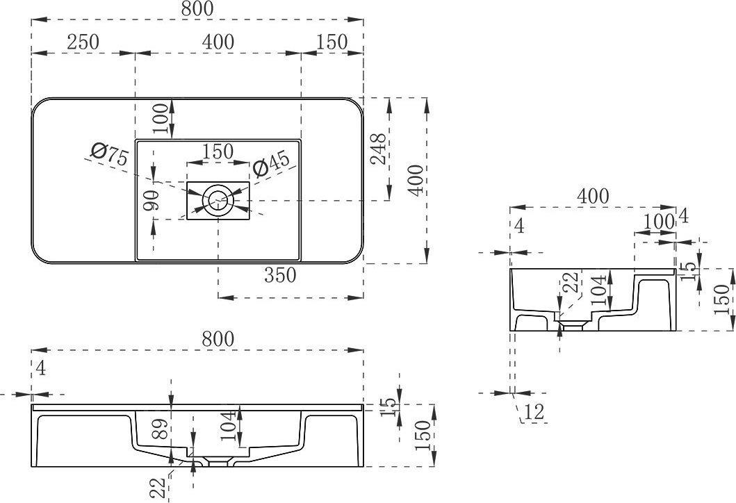 Раковина подвесная Vincea VWB-6S480MW, размер 800x400x150 мм, цвет белый матовый.