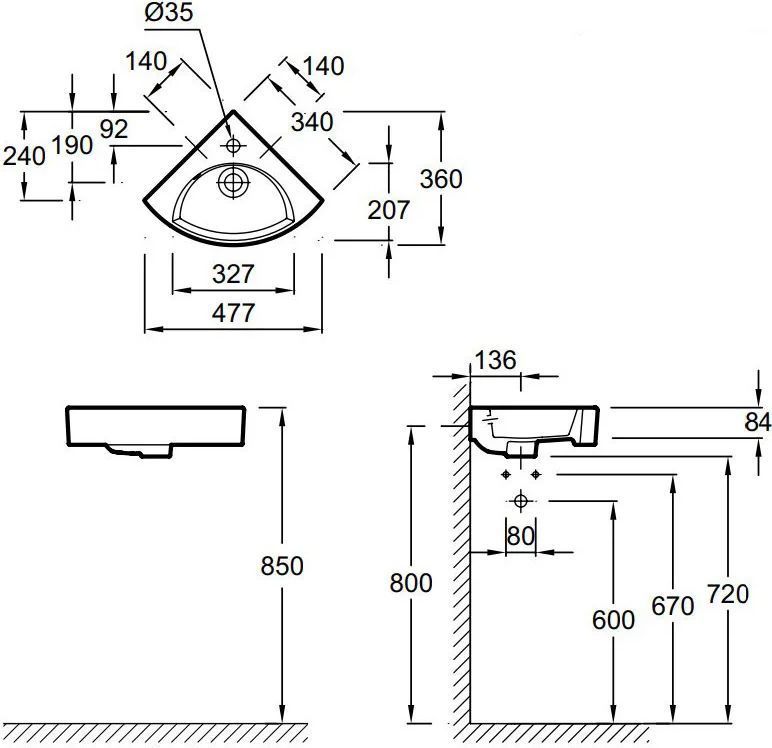 Раковина угловая Jacob Delafon Odeon Rive Gauche 34 см EGP112-00, цвет - белый.