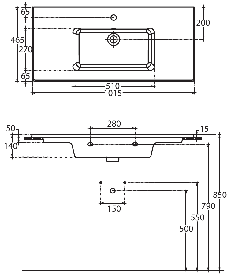 - Раковина не имеет отверстия для слива-перелива, но оборудована готовым отверстием под смеситель, что облегчает ее установку.