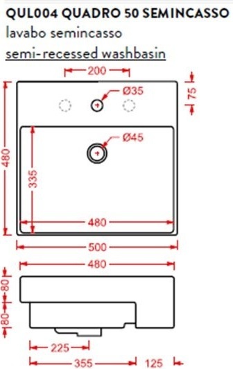 Раковина врезная на столешницу Artceram Quadro Semincasso, размер 500х480 мм. Цвет белый.