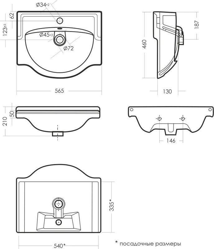 Раковина врезная Sanita Реал 56 65 см WB.FN/Real/56-C/WHT.G/S1, цвет белый.