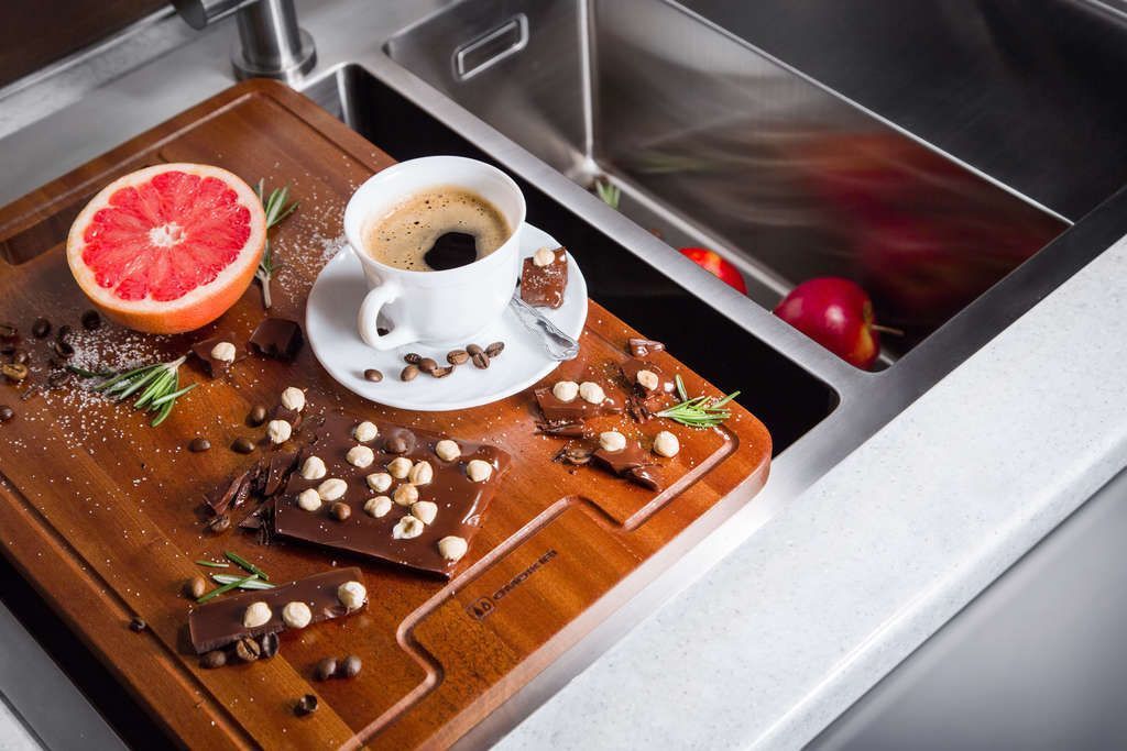 - Разделочная доска CB-01-WOOD надежно фиксируется на бортиках мойки OMOIKIRI с шириной чаши от 395 до 420 мм, длиной от 320 мм;
