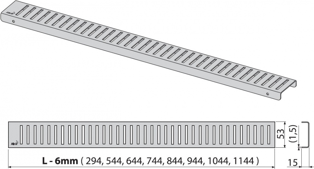 Перфорированная решетка AlcaPlast PURE-650M матовая для водоотводящего желоба 650 мм.