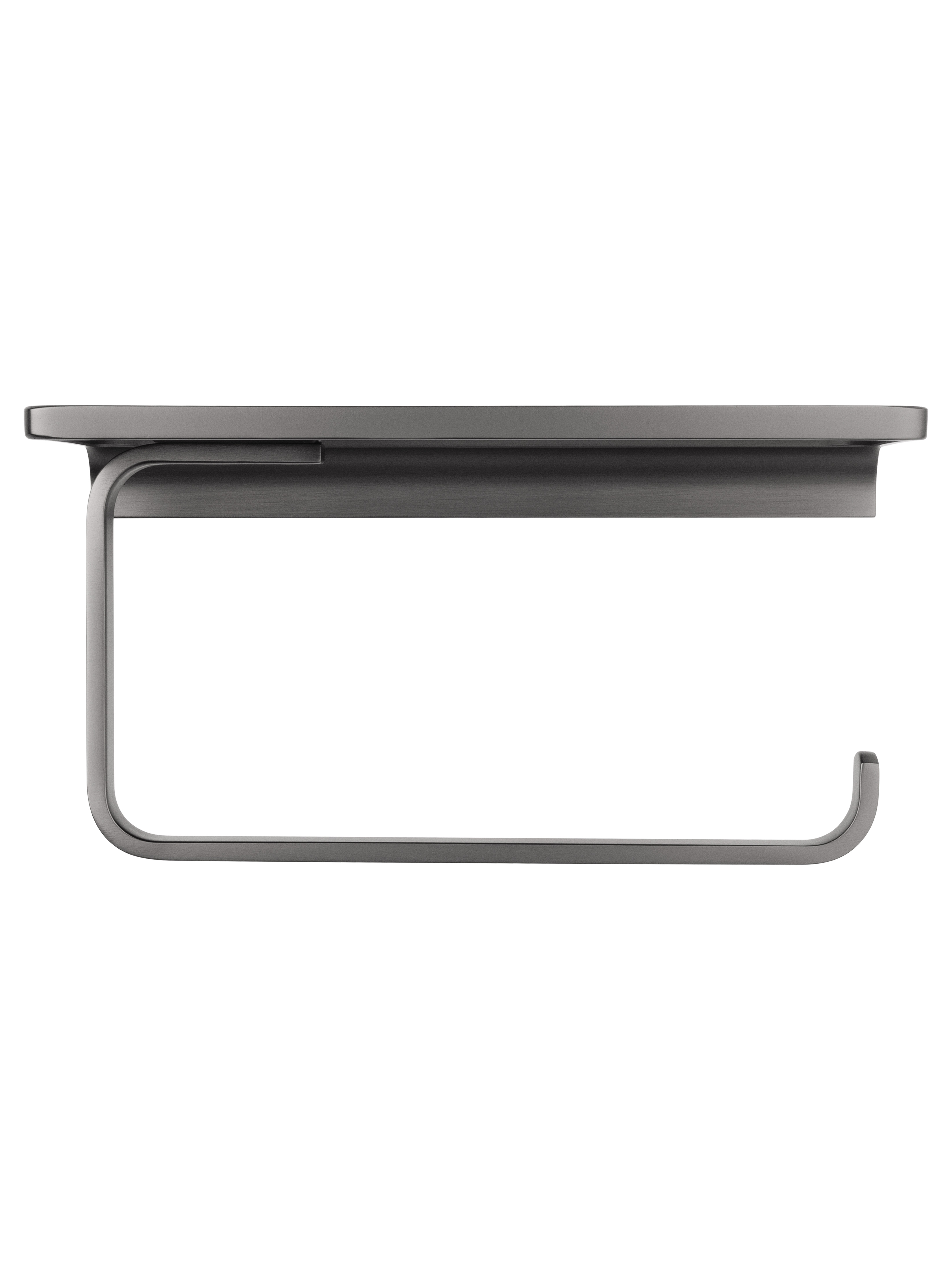 Держатель для туалетной бумаги Wonzon & Woghand Eclipse WW-9126-BGM с полкой для телефона, материал латунь, цвет тёмный графит брашированный.
