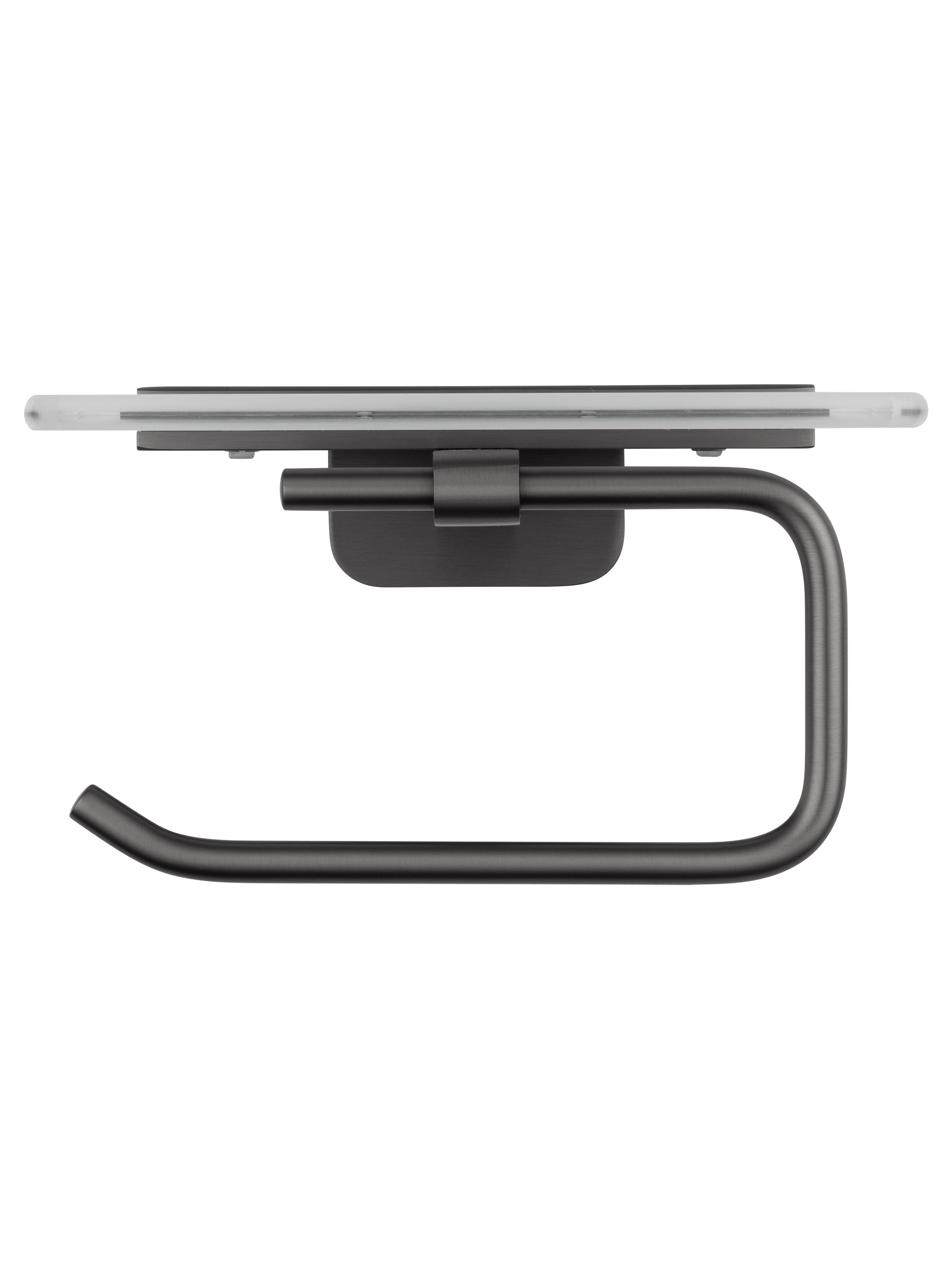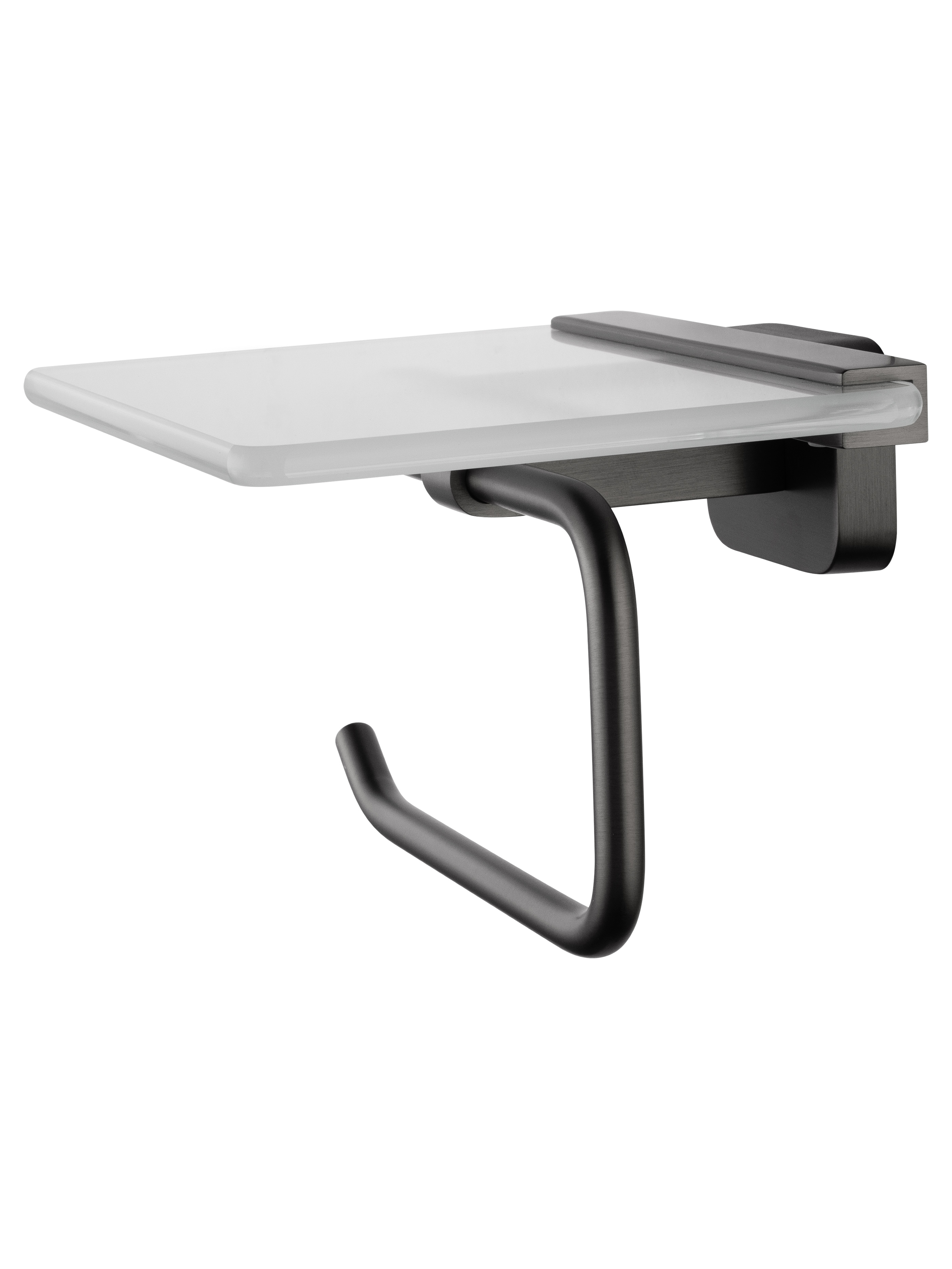Держатель для туалетной бумаги Wonzon & Woghand Graffity WW-9326 с полкой для телефона, материал латунь/стекло, цвет тёмный графит брашированный.