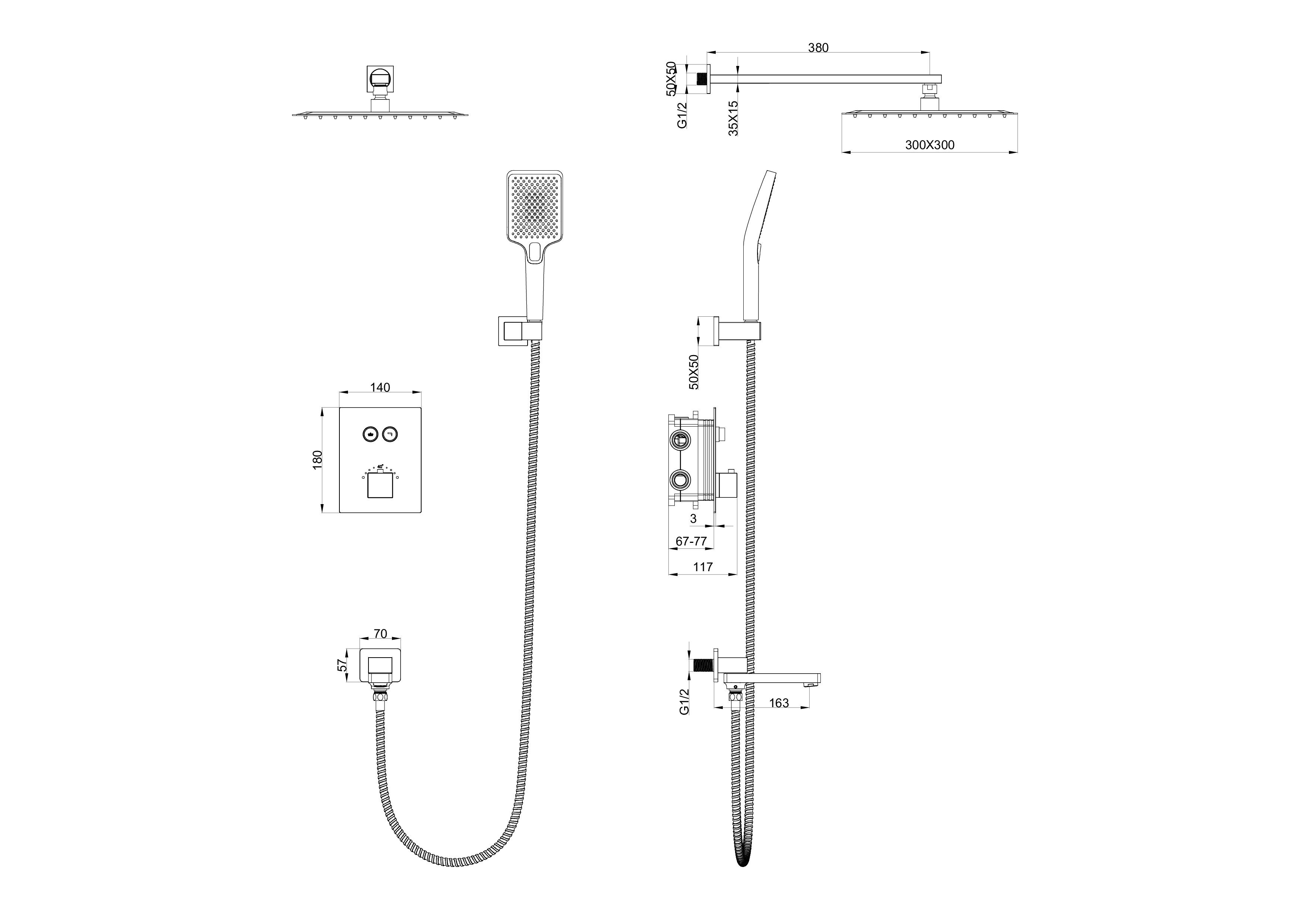 Душевая система для ванны с термостатом Wonzon & Woghand WW-88929003-CR