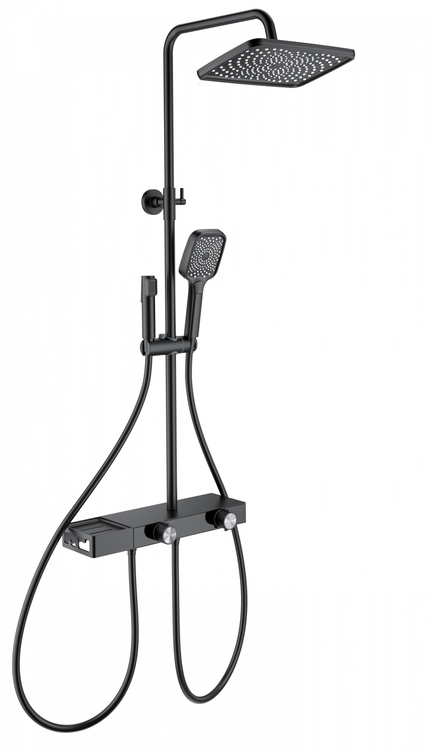 Душевая стойка с термостатом и гигиеническим душем Wonzon & Woghand Shelf WW-B4161-MB, чёрный матовый - фото