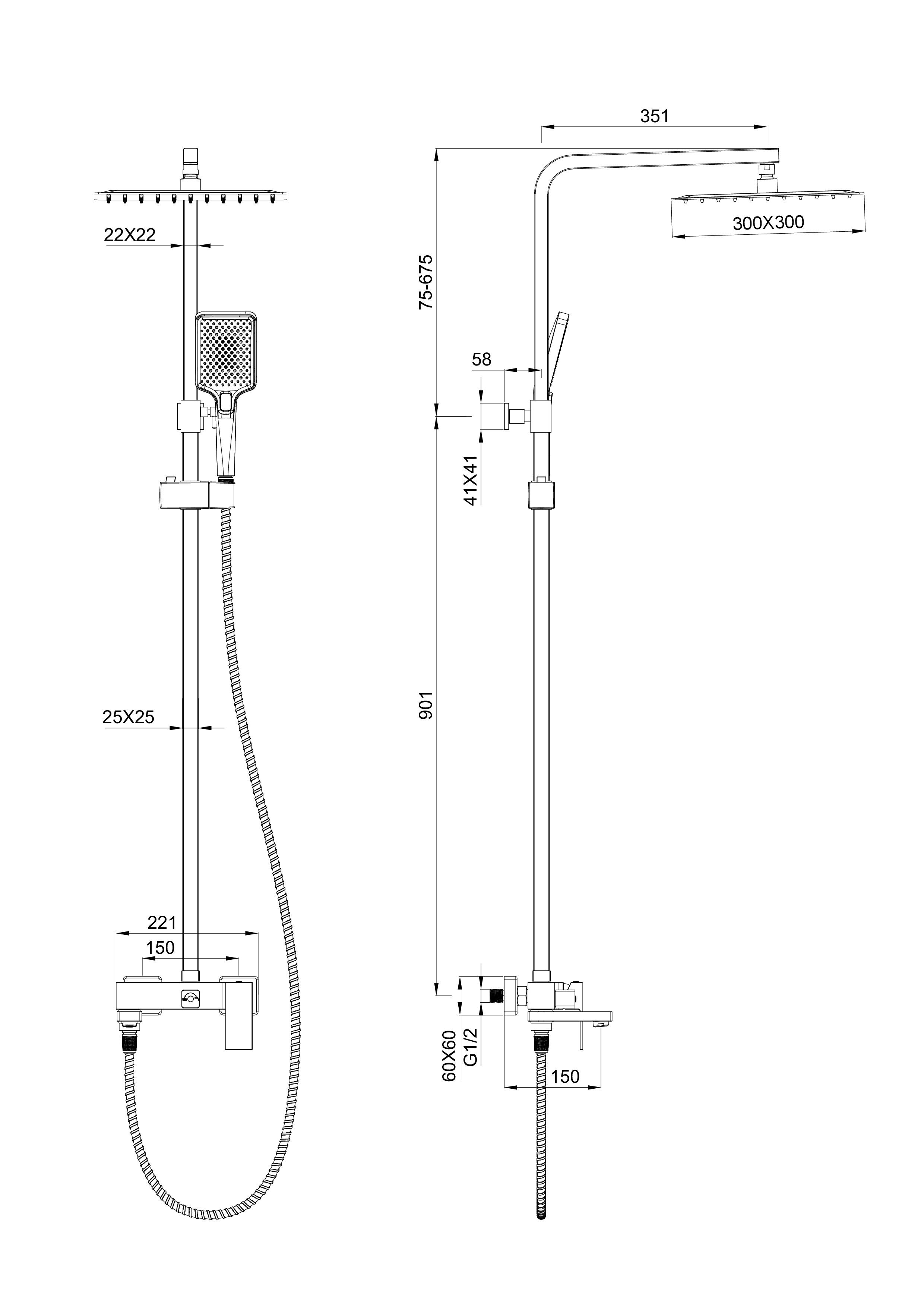 Душевая стойка Wonzon & Woghand Cube WW-88739016-BGM, материал латунь, цвет тёмный графит брашированный.