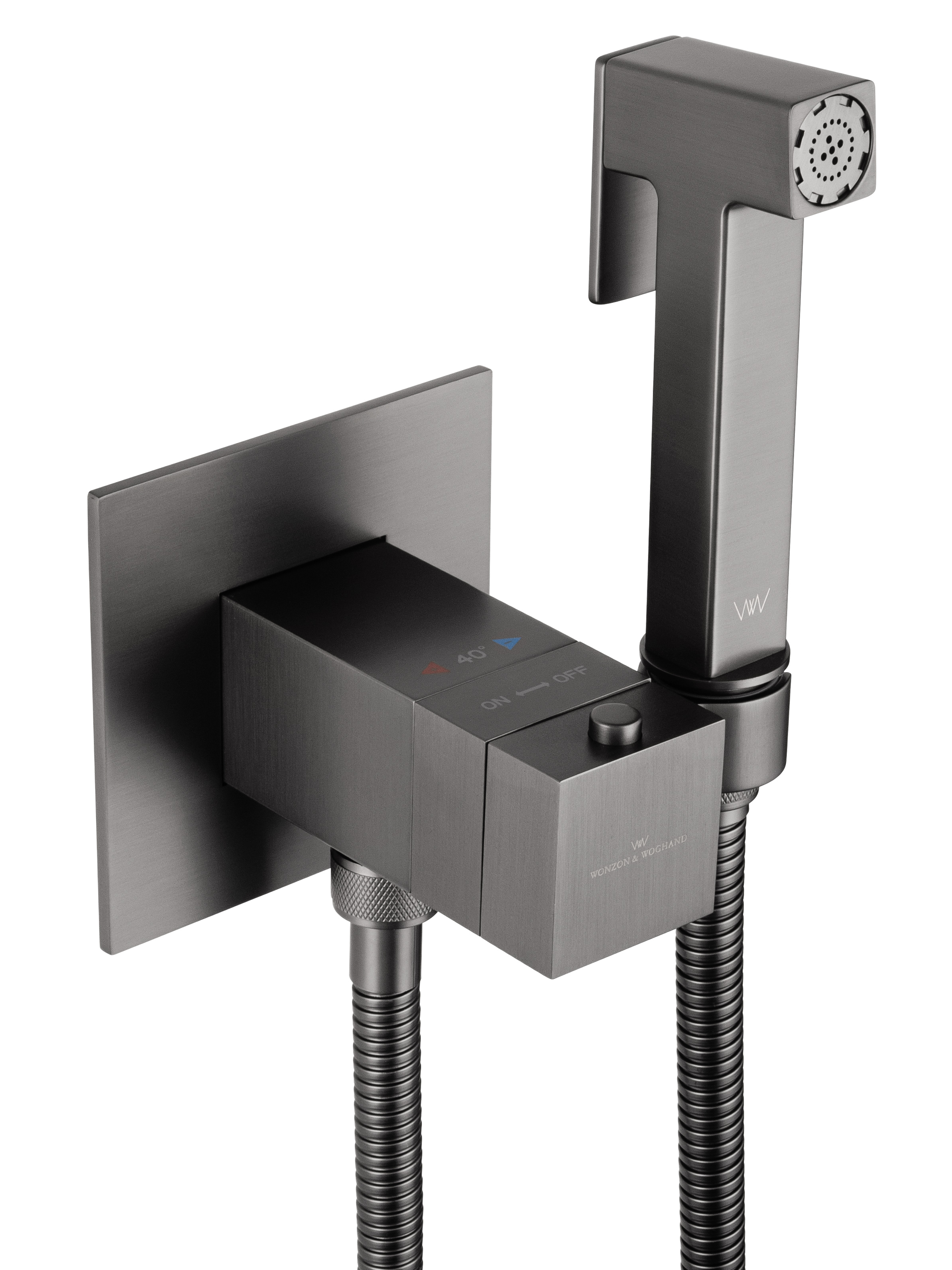 набор для гигиенического душа с термостатом Wonzon & Woghand WW-88829910-BGM (со скрытой частью) тёмный графит