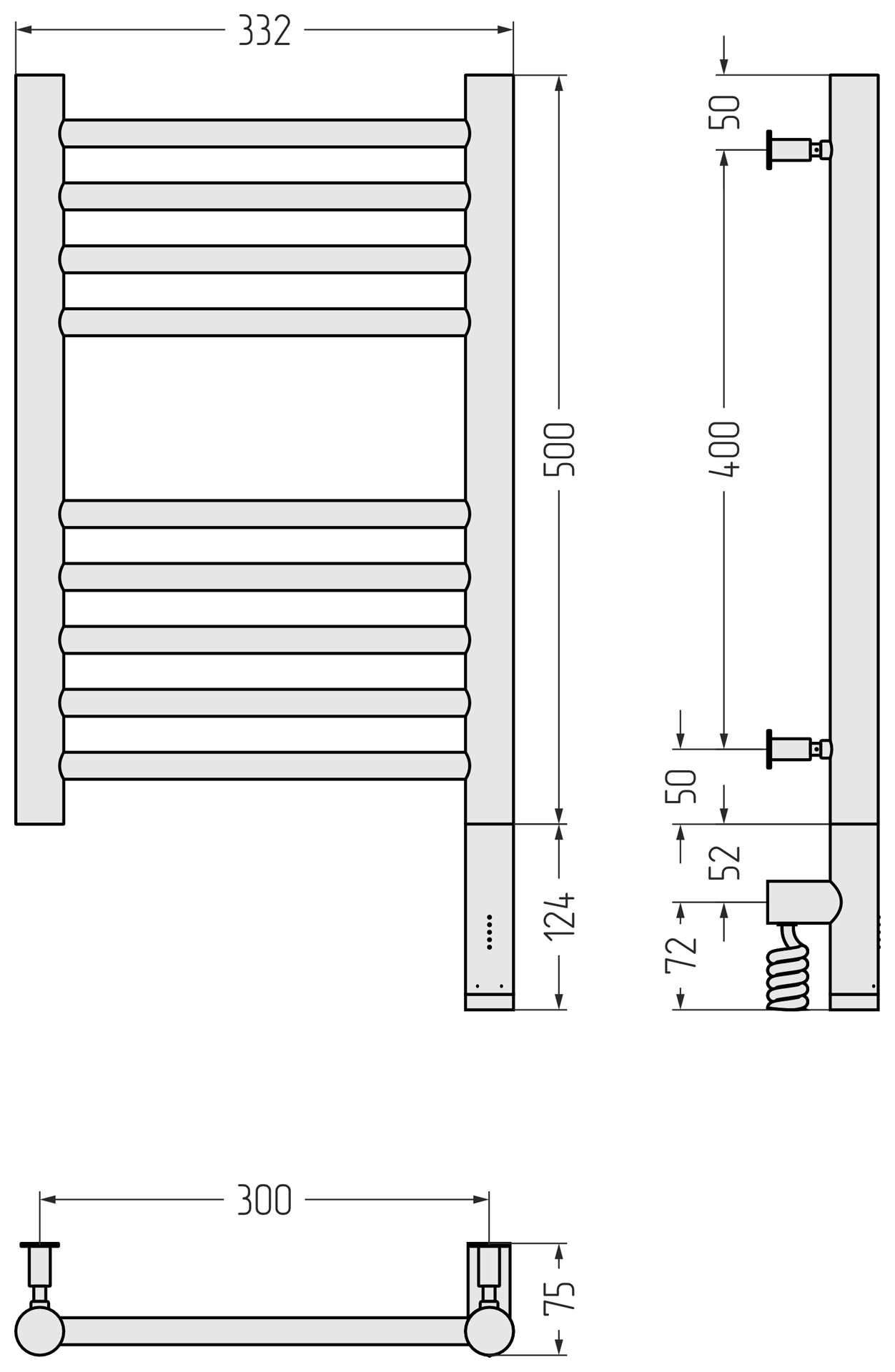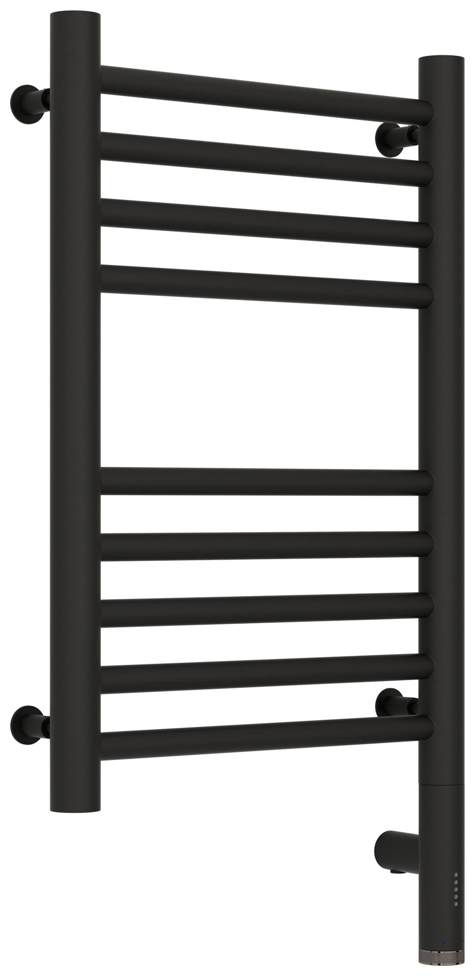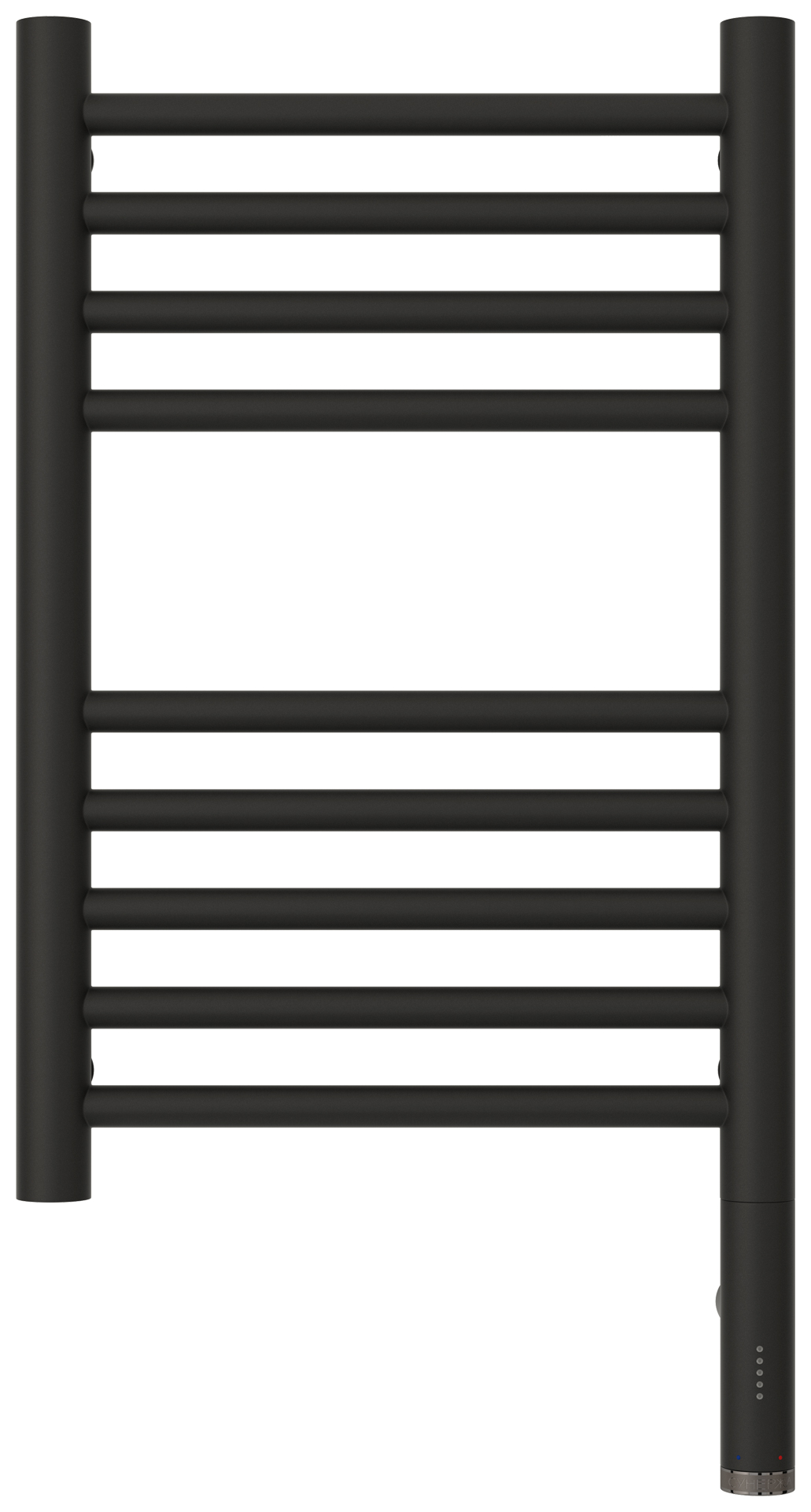 Полотенцесушитель электрический Сунержа Богема 3.0 15-5805-5030, размер 332x624 мм, 9 перекладин, мощность 300 Вт, цвет тёмный титан муар. Интегрированное в корпус скрытое подключение.