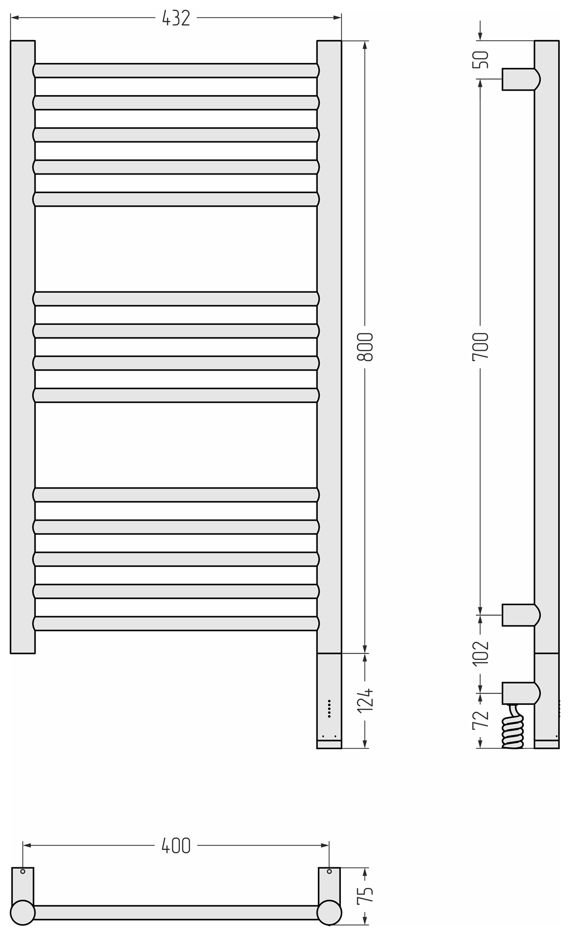 Полотенцесушитель электрический Сунержа Богема 3.1 П14 400x920 мм (прямая перемычка) 15-6005-8040 R, тёмный титан муар