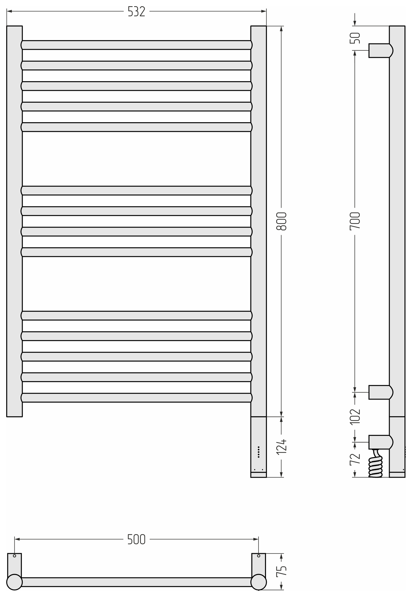 Размер полотенцесушителя - мм