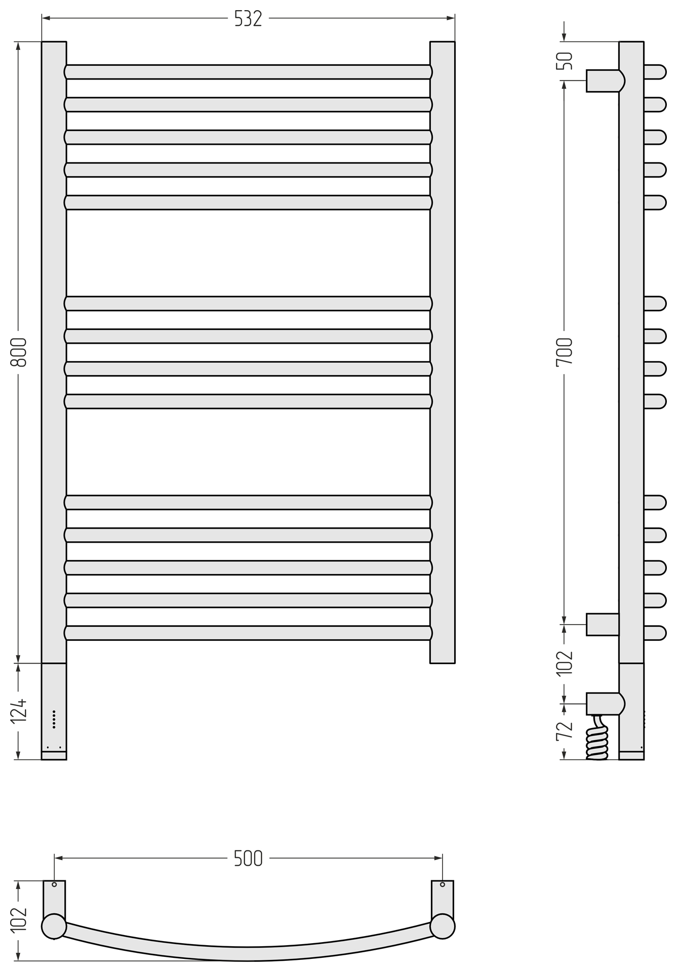 Полотенцесушитель электрический Сунержа Богема 3.1 П14 500x920 мм (выгнутая перемычка) 051-6002-8050 L, состаренная латунь