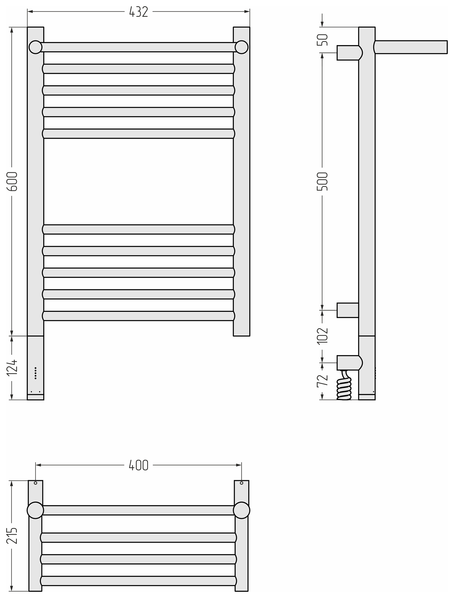 Размер полотенцесушителя - мм
