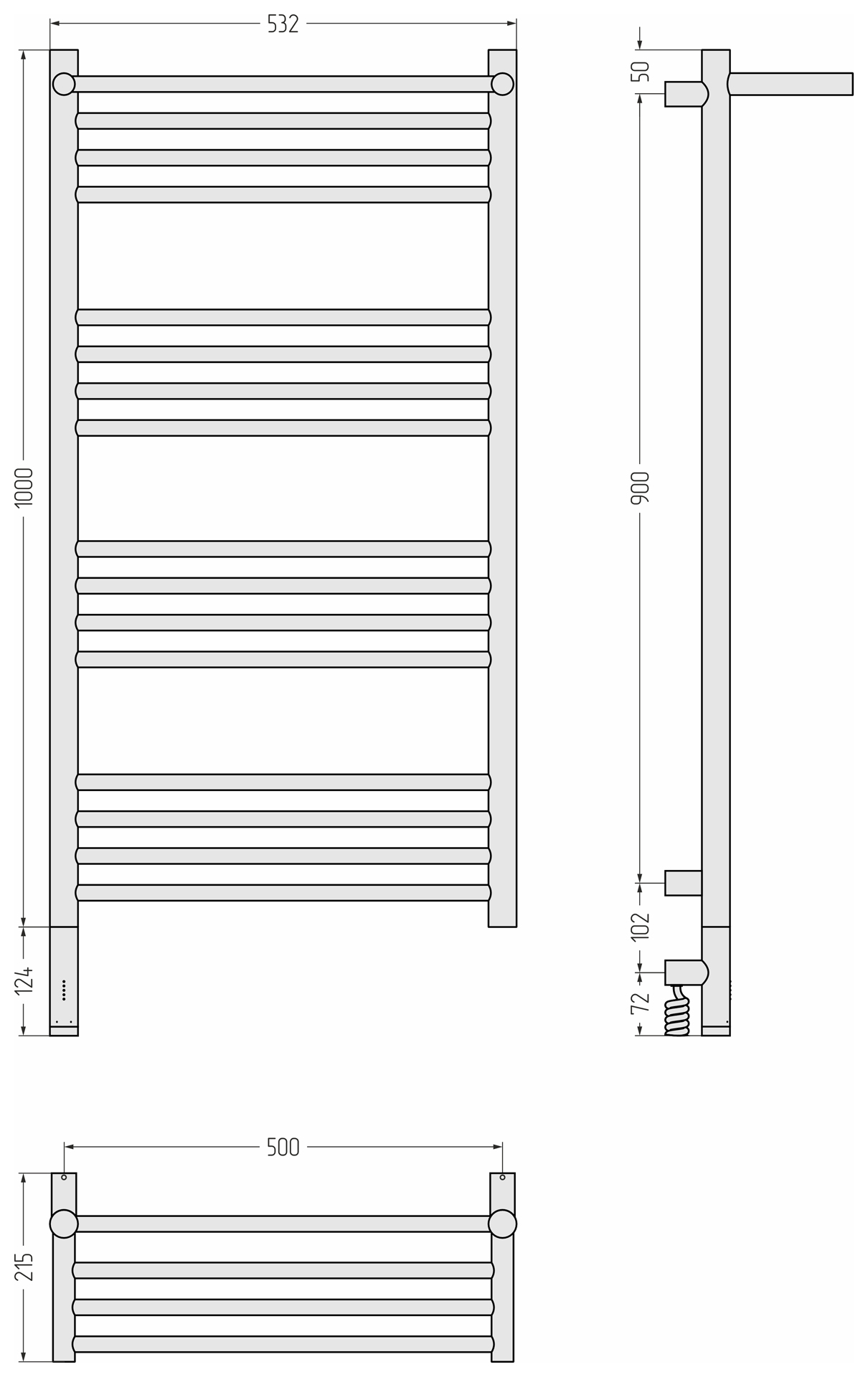 Размер полотенцесушителя - мм