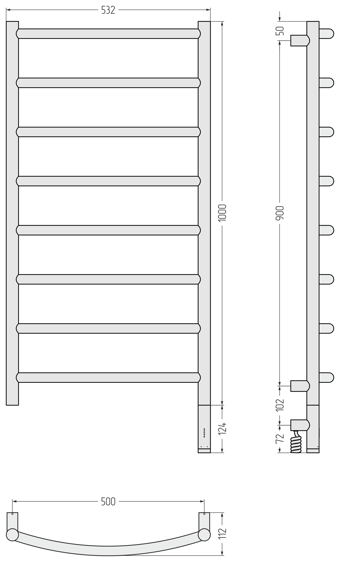 Размер полотенцесушителя - мм