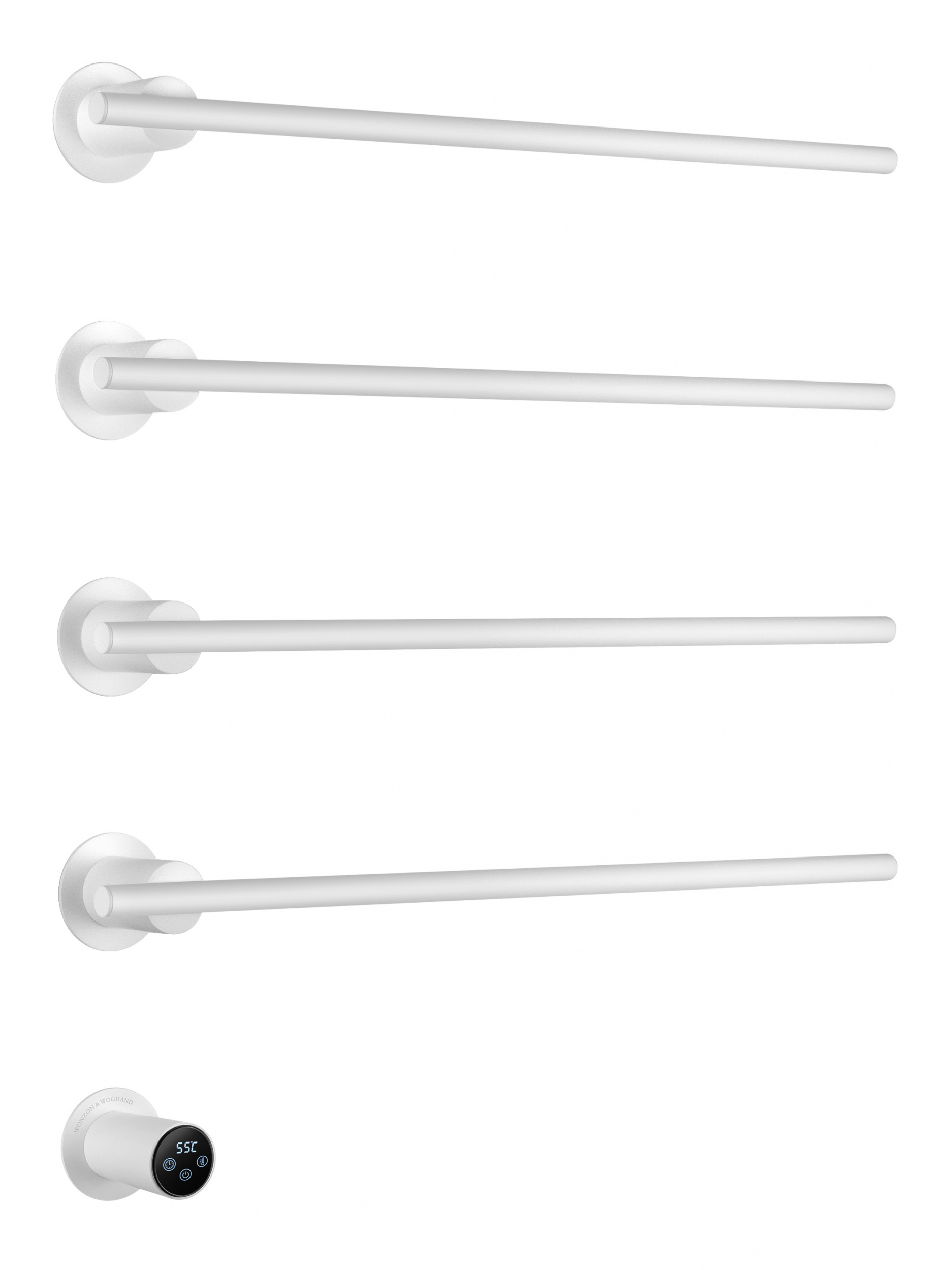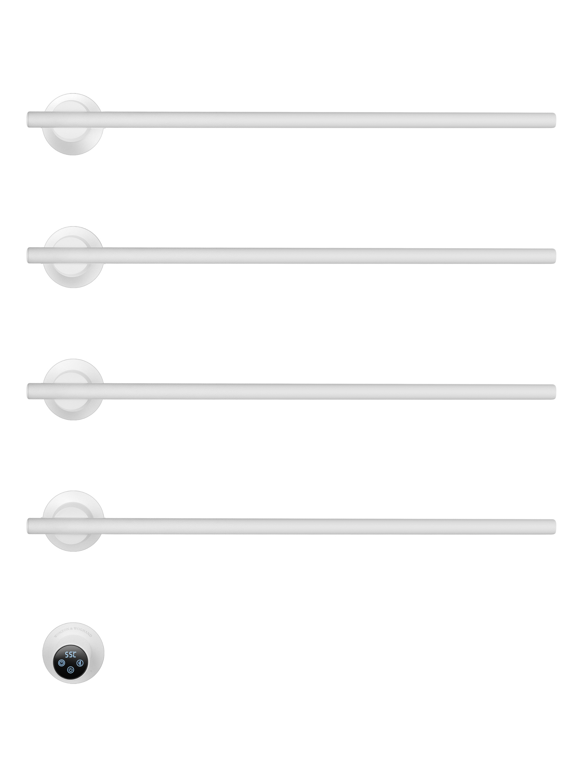 Полотенцесушитель электрический Wonzon & Woghand Dortmund WW-A364-MW, размер 584x610 мм, 4 перекладины, мощность 56 Вт, цвет белый.