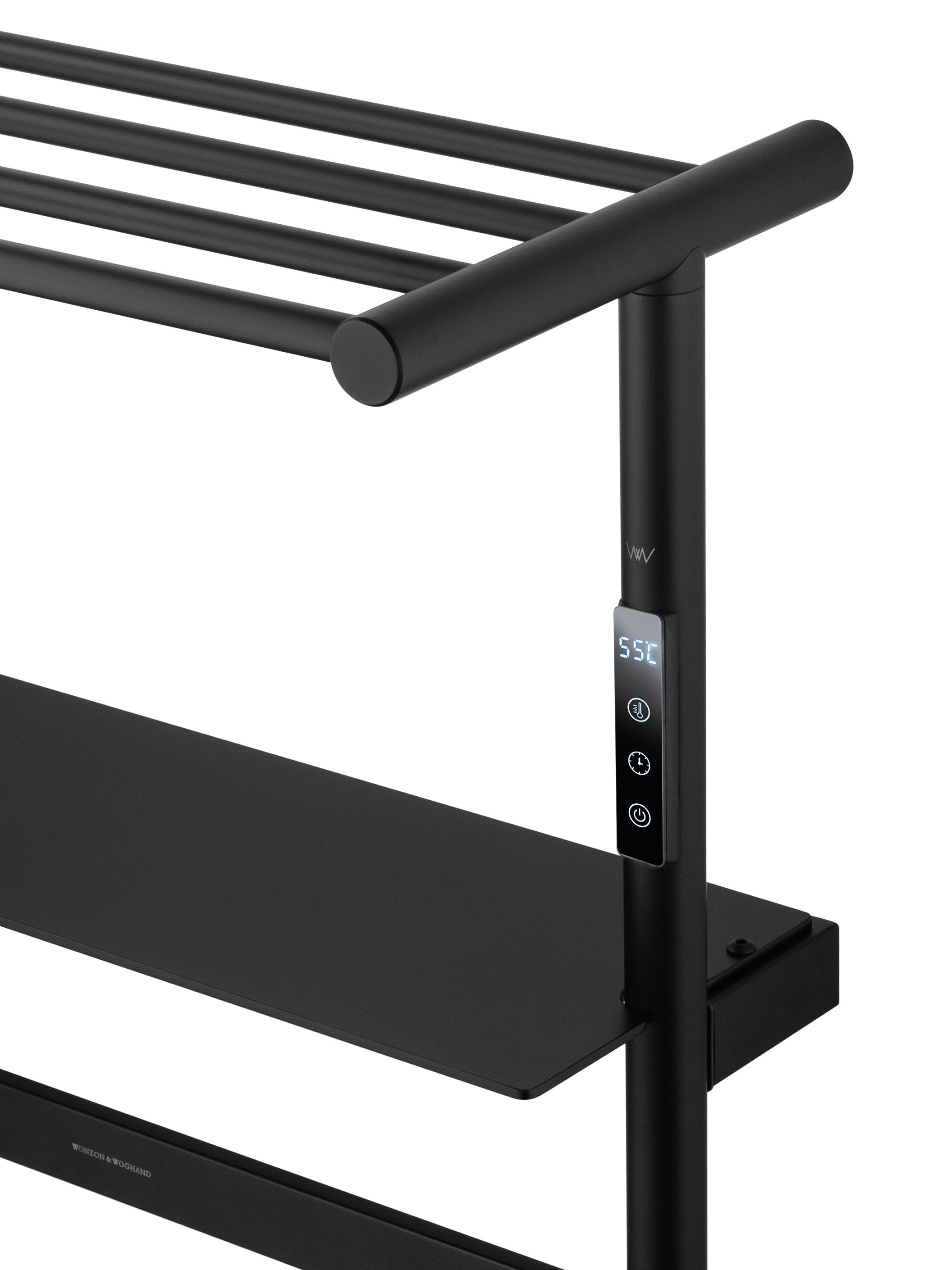 Полотенцесушитель электрический Wonzon & Woghand Düsseldorf с полкой П7 450x862 мм WW-A208-MB, чёрный - фото
